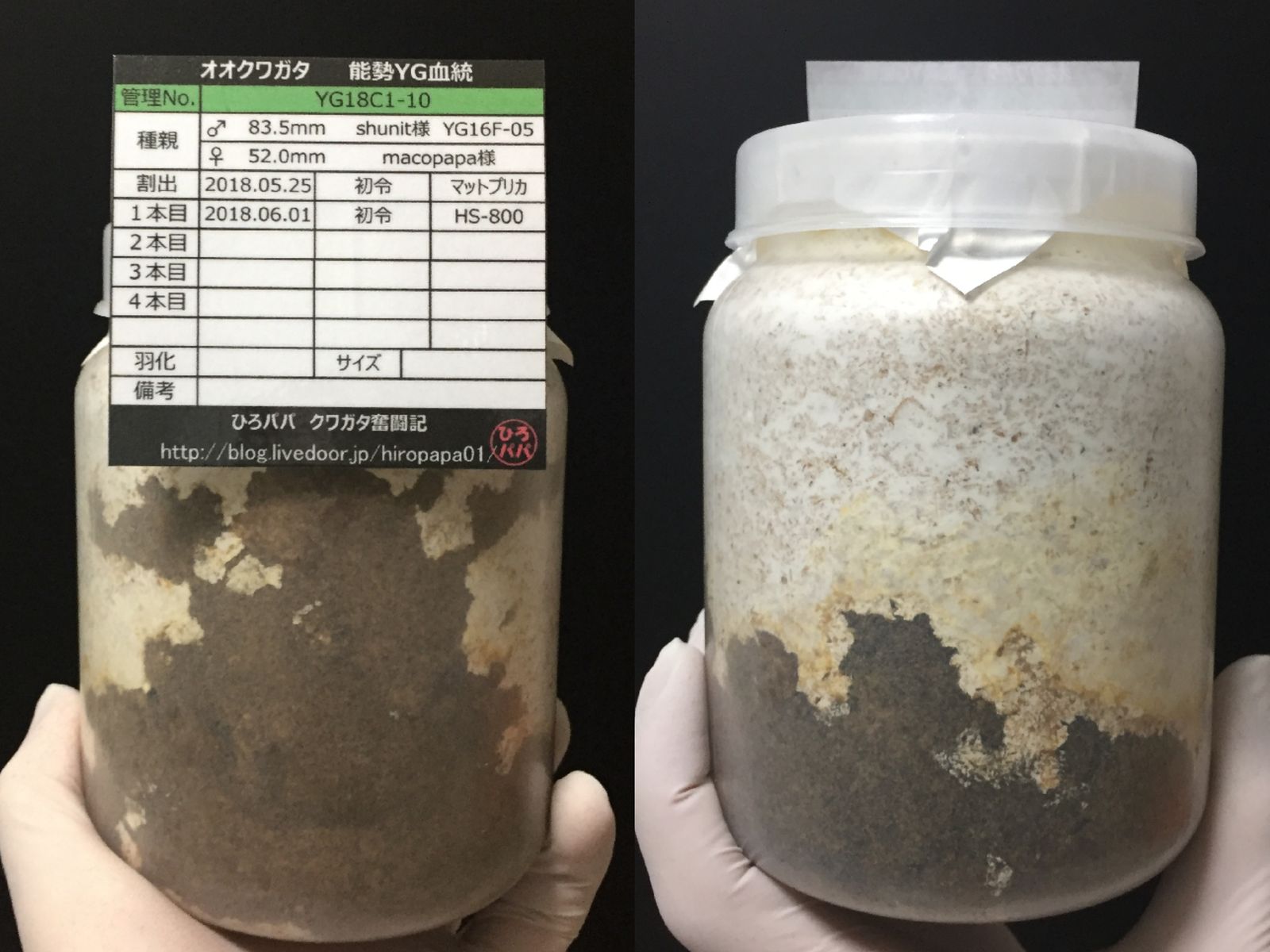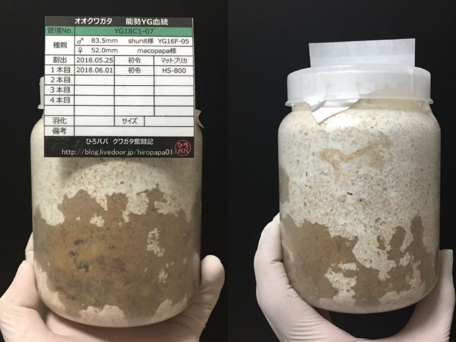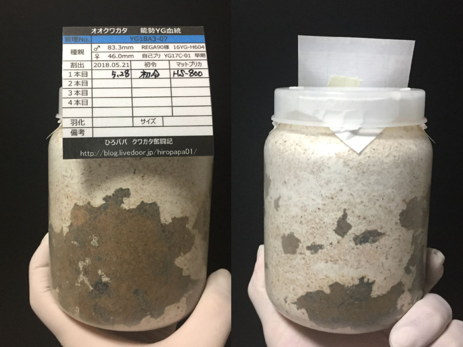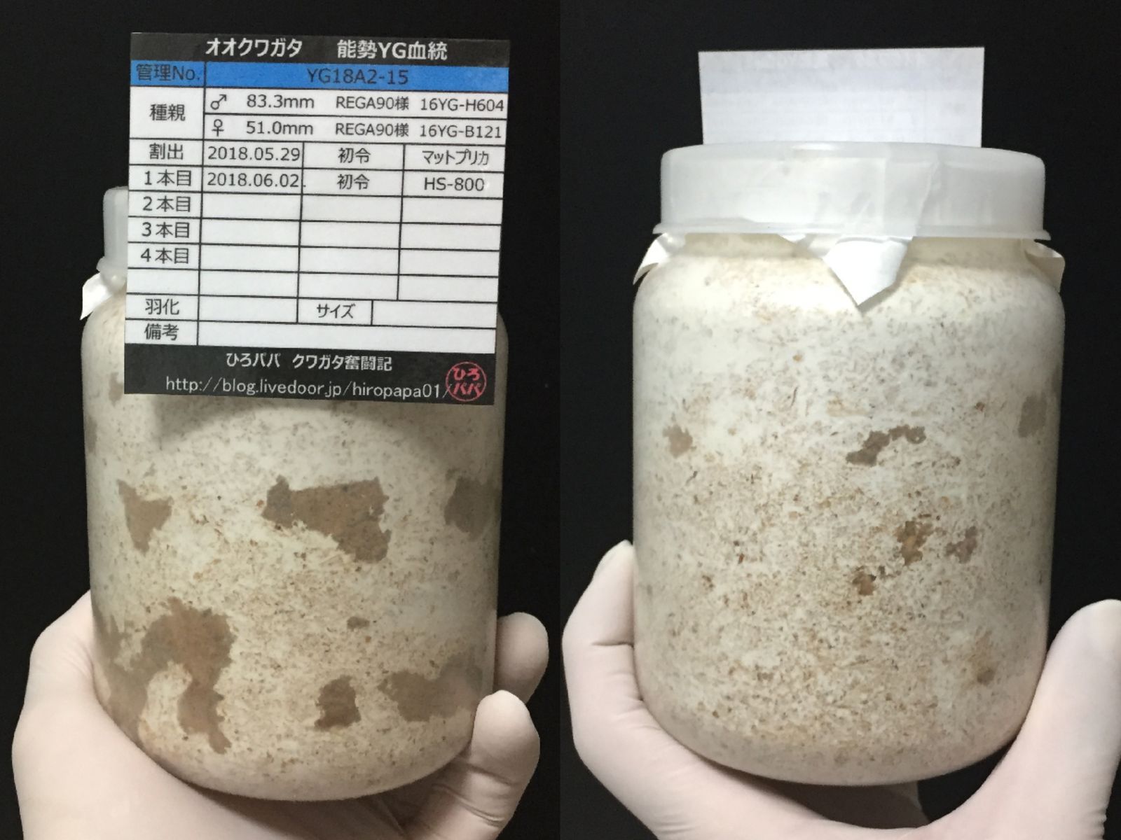 オガは飛び散るわ、菌糸の上面は汚れるわで大変でした・・・(;´Д`)