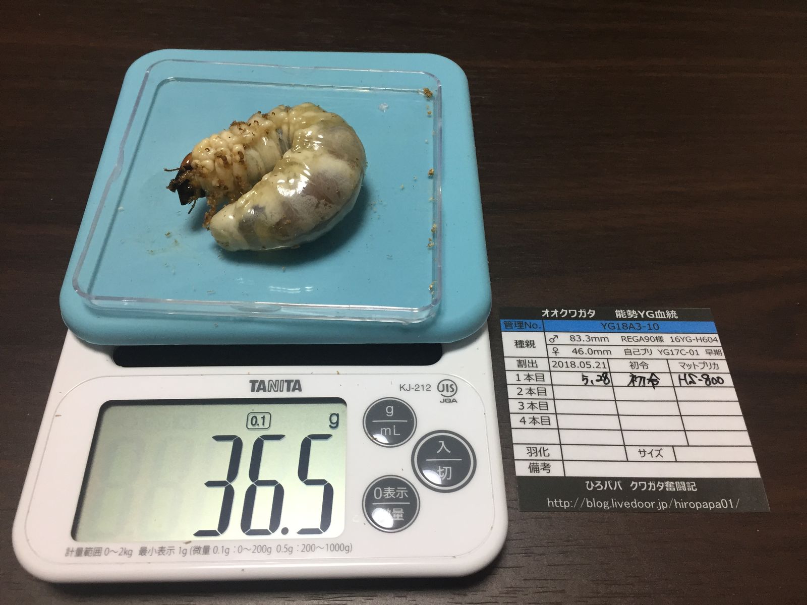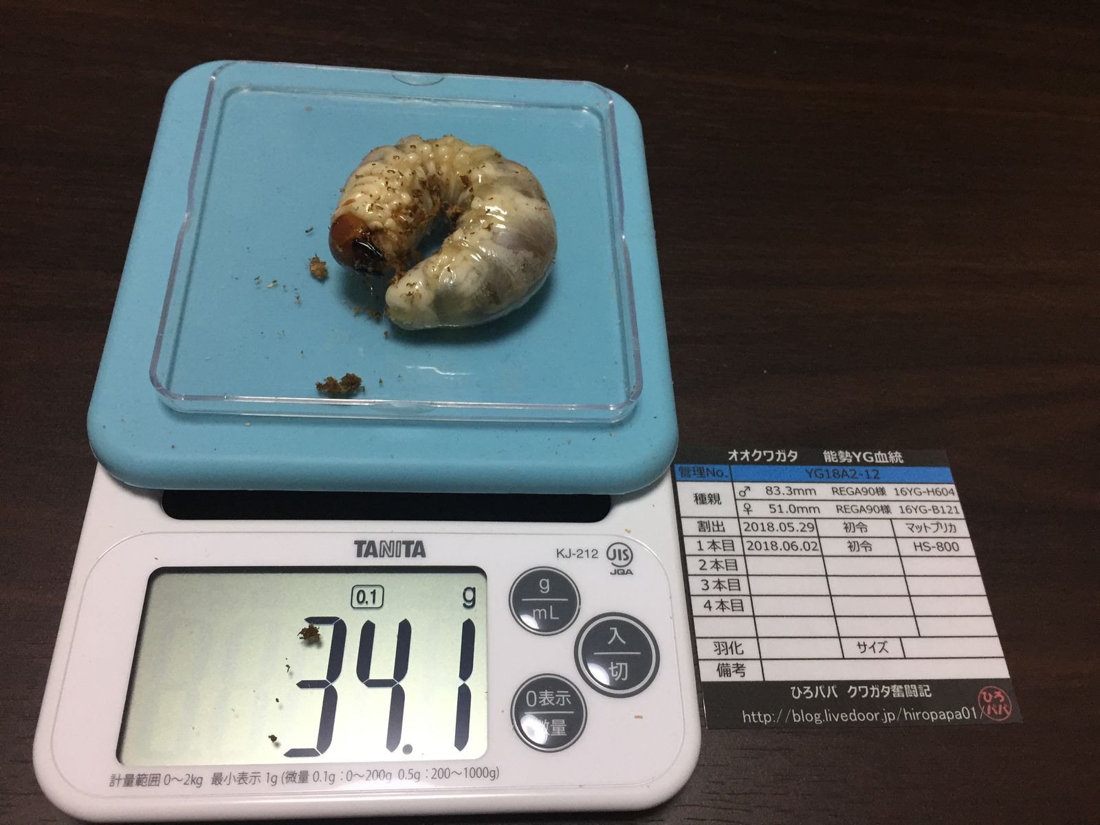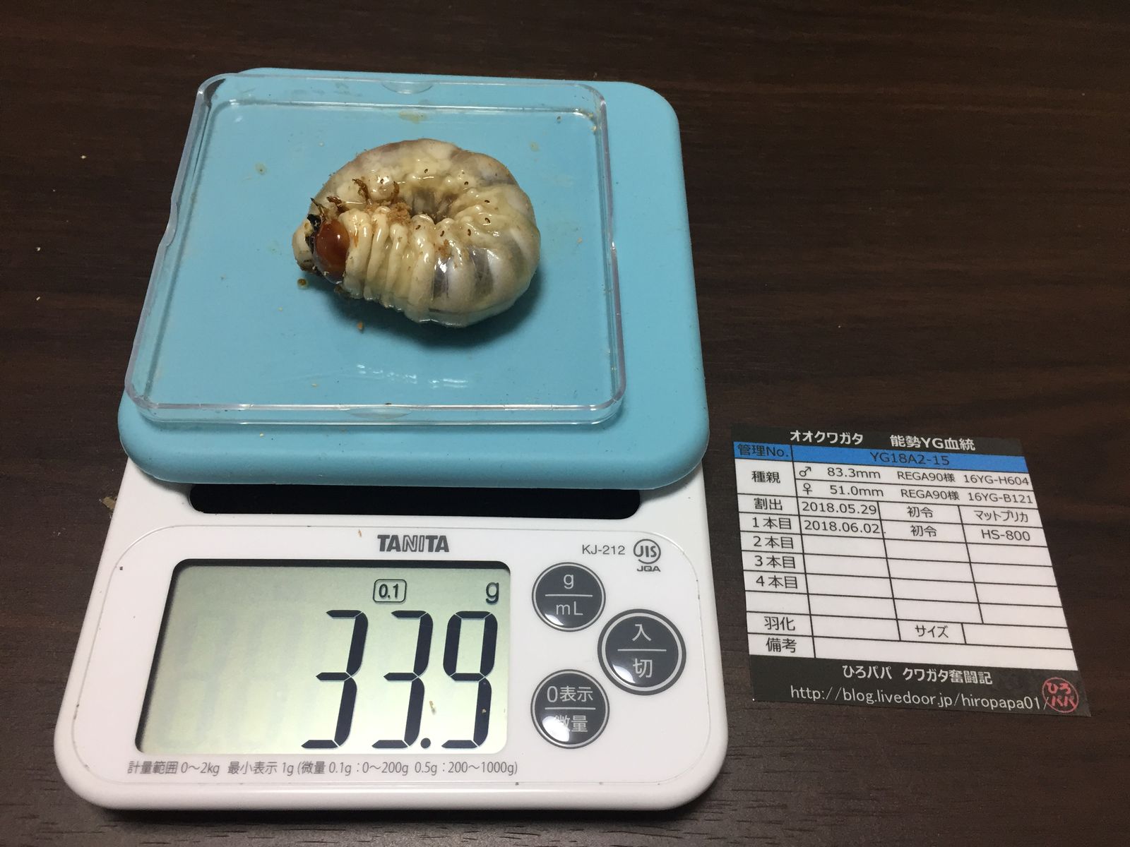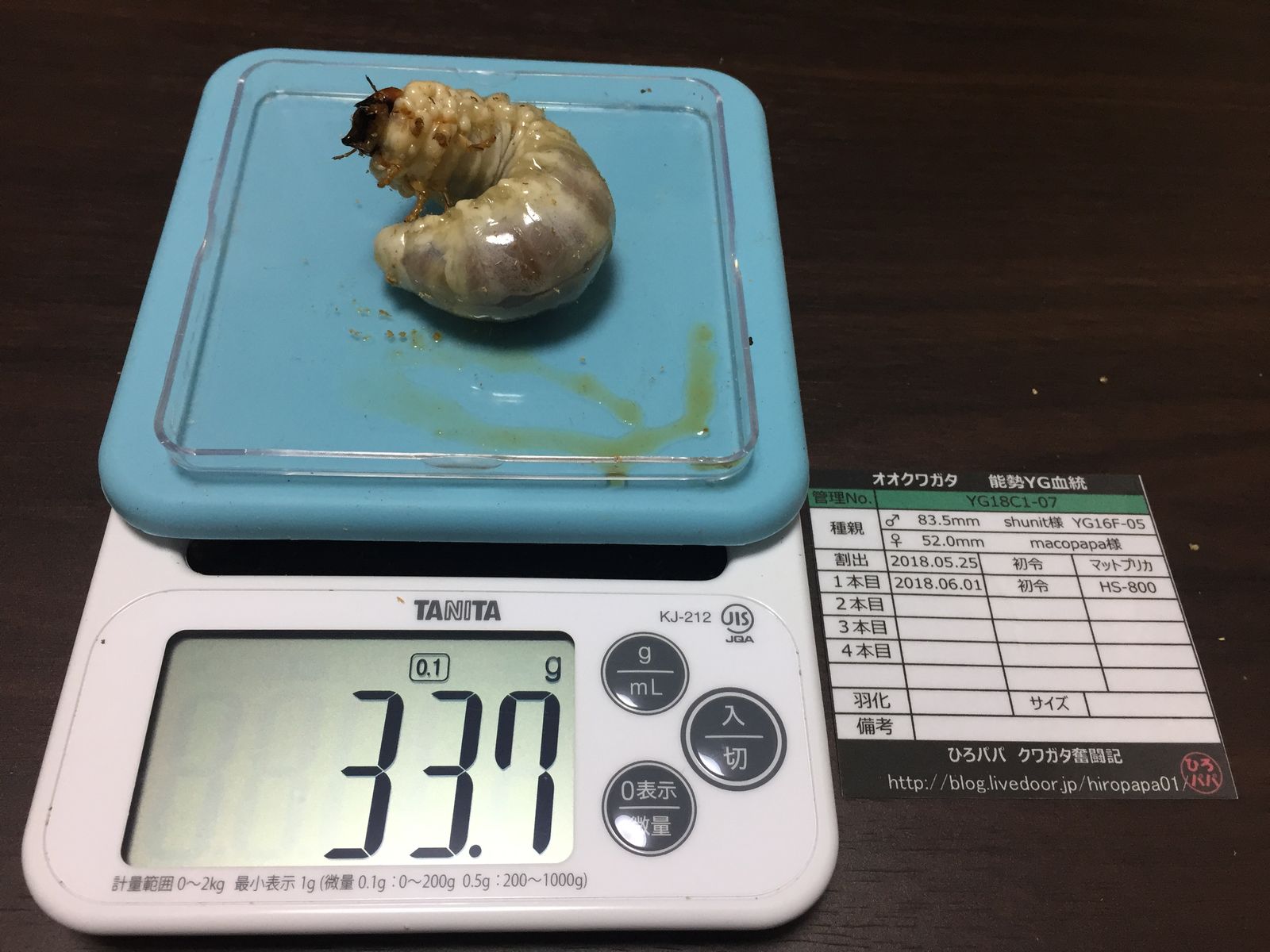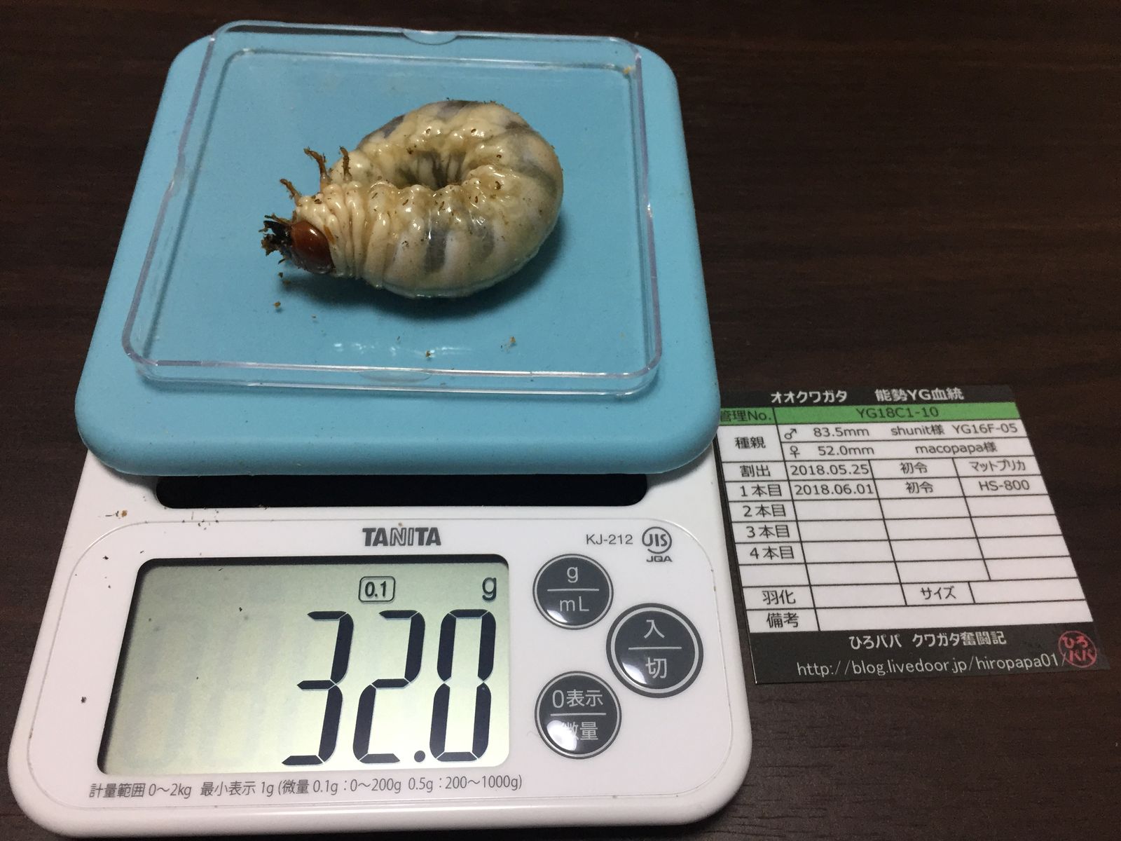昨年と同じように全ての幼虫を撮影していますが(笑)頭数が頭数なだけに、すべての幼虫の画像を載せるわけにもいきませんので、現在までの32gOverだけ♪