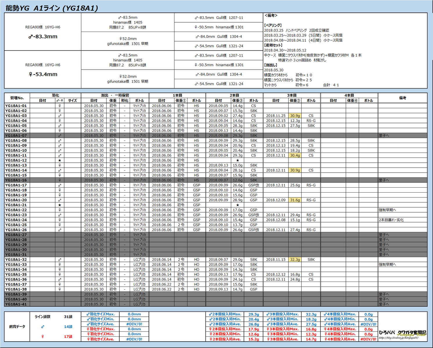 以前心配していたような早期羽化や蛹・★は1頭もいませんでした。