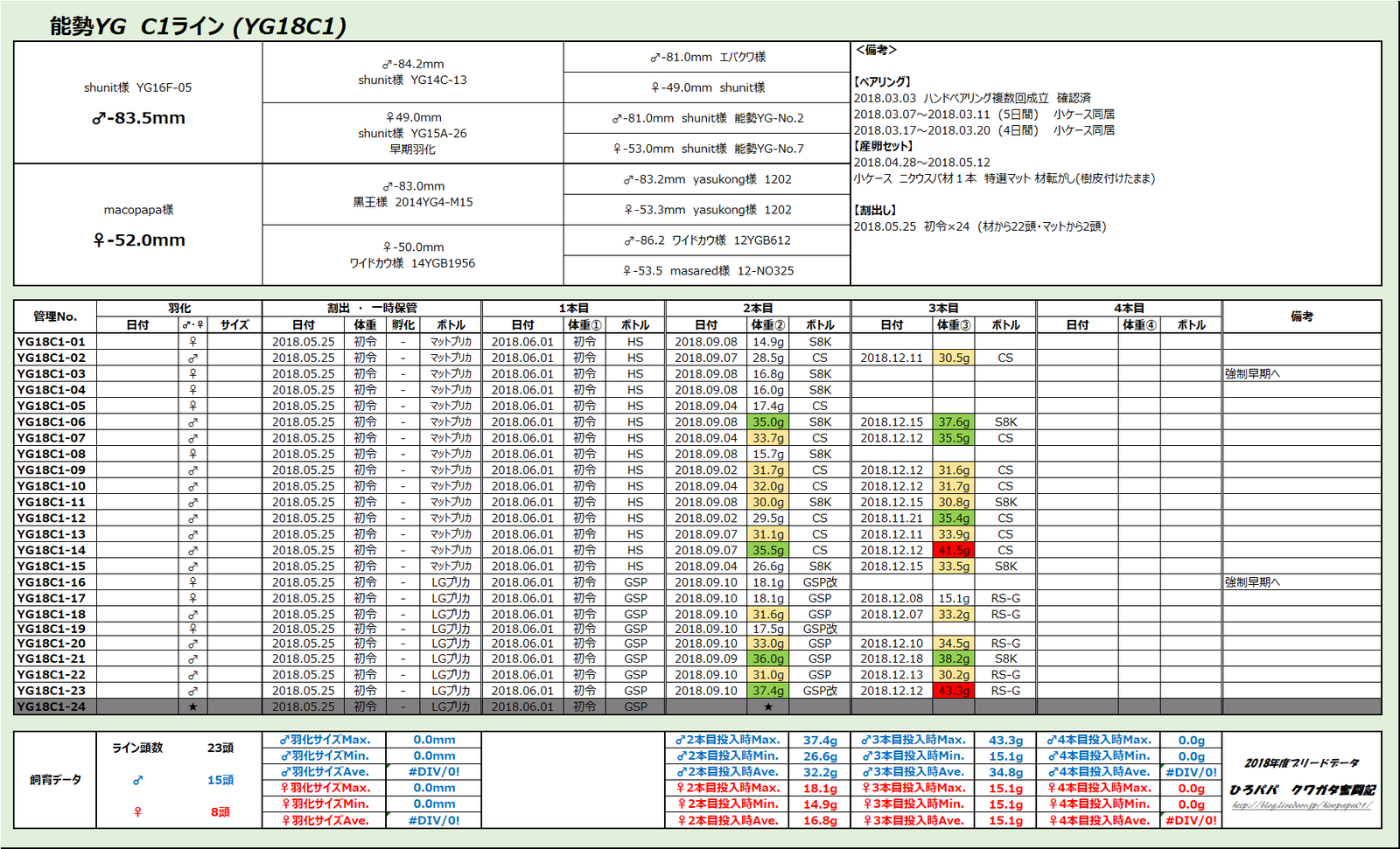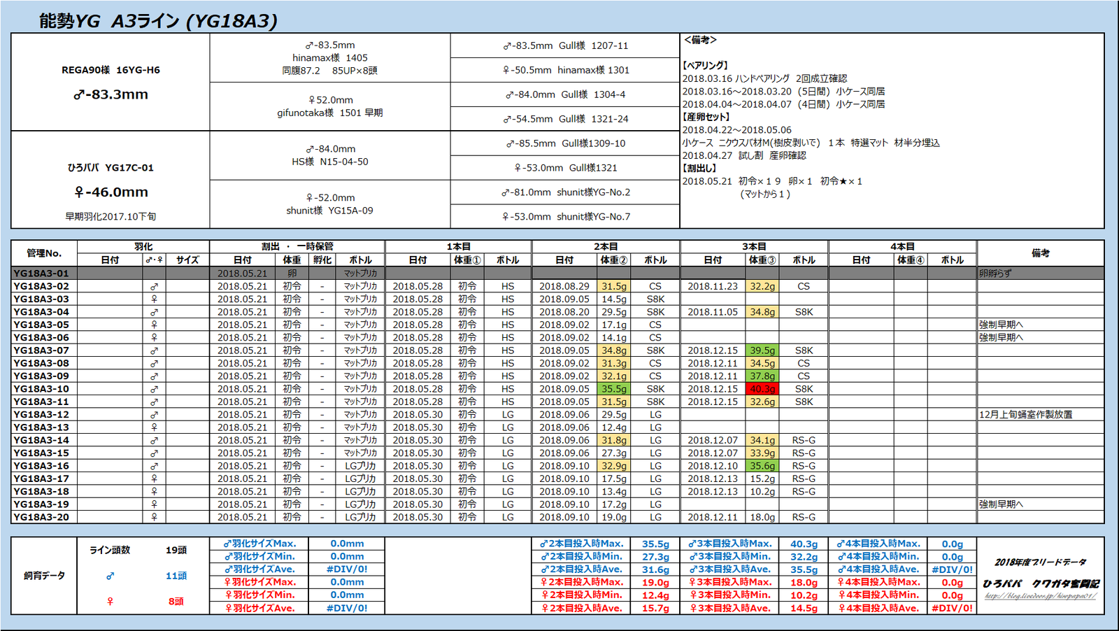 この結果は飼育環境が良いということの証明だと思います