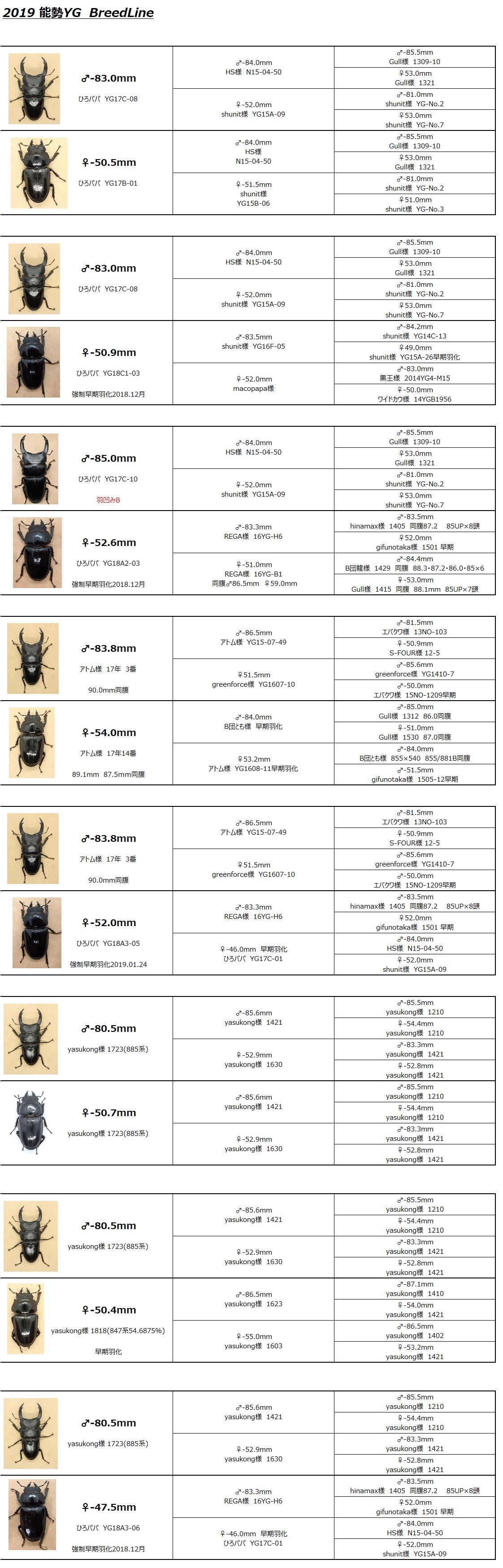 こんなラインラップで2019年度能勢YGブリード3年目挑もうと思います(*´▽`*)
