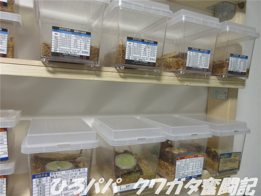 今までは少しずつ買い足していましたが、100頭を超える新成虫が羽化してきた事によりついに箱買いです(´∀`)