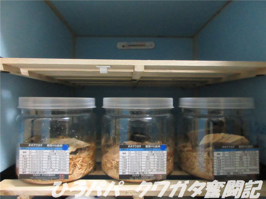2018年度羽化個体はまだ選別も終わってませんし、幼虫飼育に使用していたボトルにそのまま入ってもらっています。