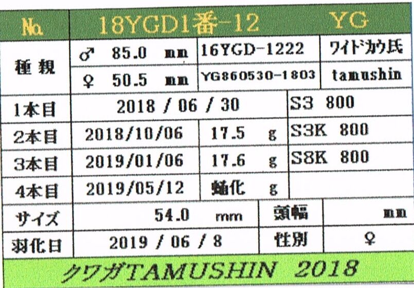 ♂親はともさん88.5mm同腹、shimaさん14-2番からのラインです。