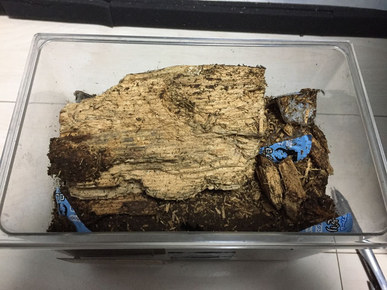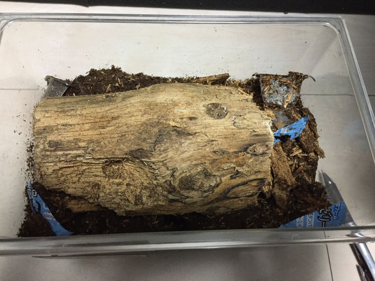 こちらはクヌギ産卵木を1本半投入した産卵セット。