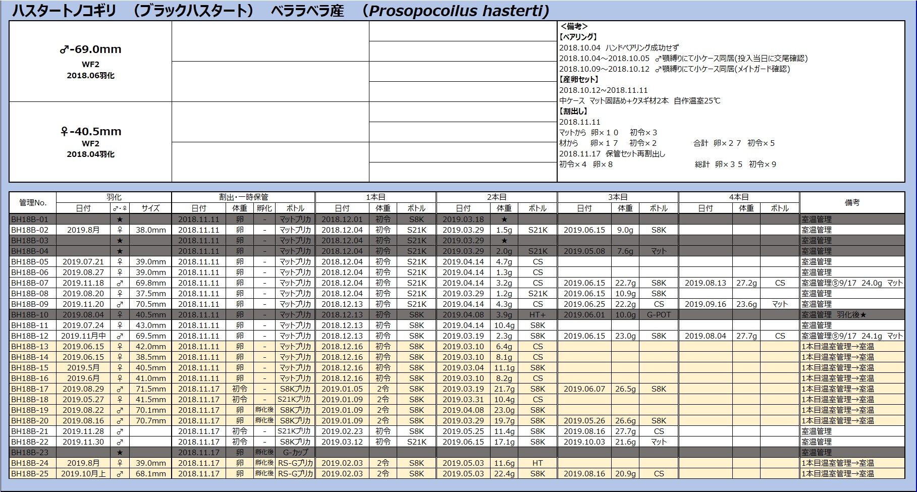 最下部に管理表を載せましたが、菌糸に至っては能勢YGの余った菌糸を使用するといういい加減な飼育になっていました。