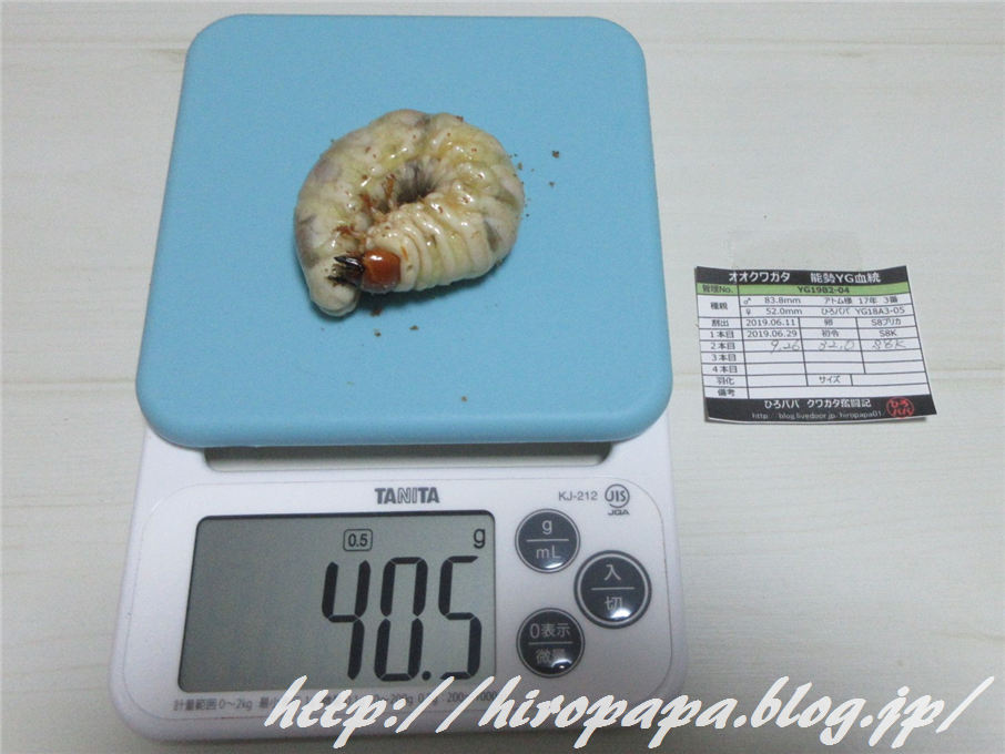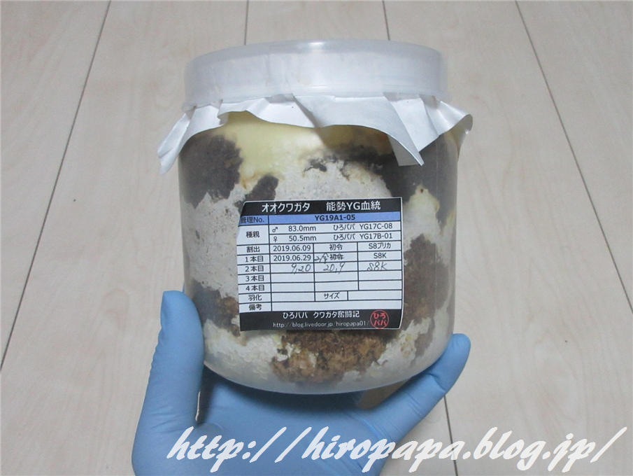 初めて羽化させた46.0mmの小さな♀からの累代で、ここまで大きな幼虫が出てくれると喜びも倍増ですね。