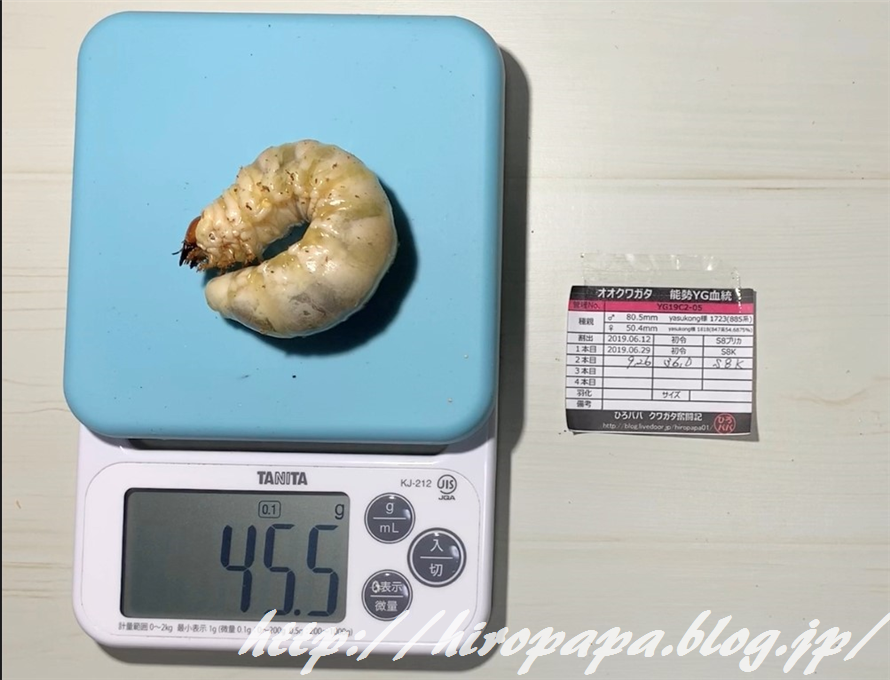 80mm種親からの幼虫でアベレージ38.4g。