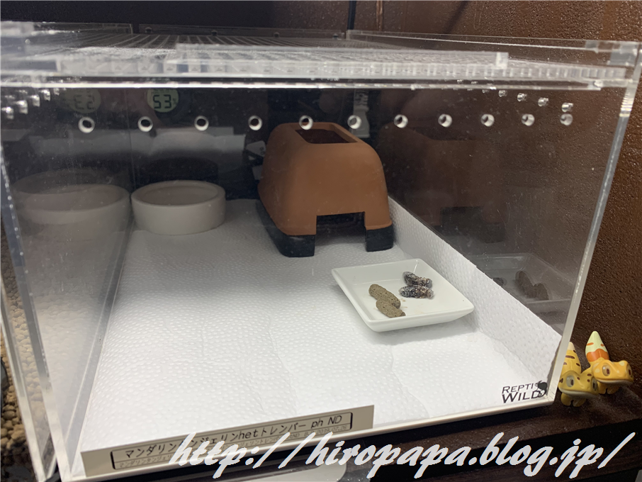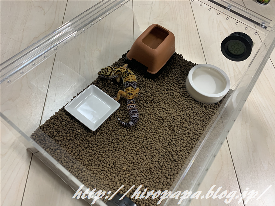ですが、これからレオパを長く飼育するに当たって色々なものも知っておいたほうがいいと思い、ブラッドジャングルの子は床材を変えてみました。