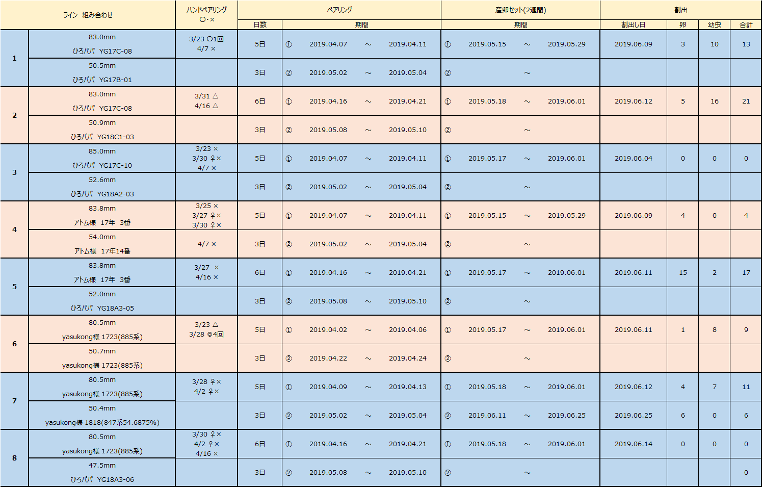 監視下で1度も成功していなくても産卵は確認していますし、産卵数は♀のコンディションや産卵セットの組み方の影響が大きいと思いますのでハンドペアリングの必要性はあまり感じられません。