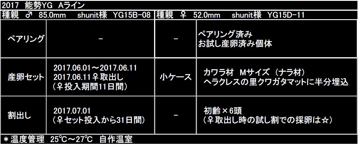 オオクワガタ能勢YG Aライン産卵セット割出し