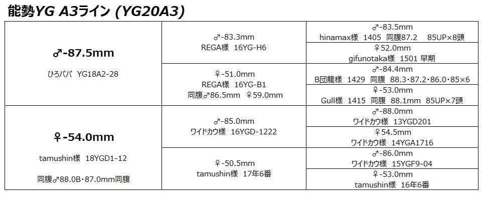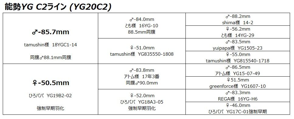 YG19C2は45.5gを筆頭に幼虫体重アベレージも高かったラインです。