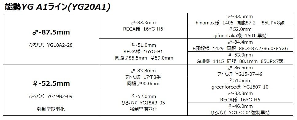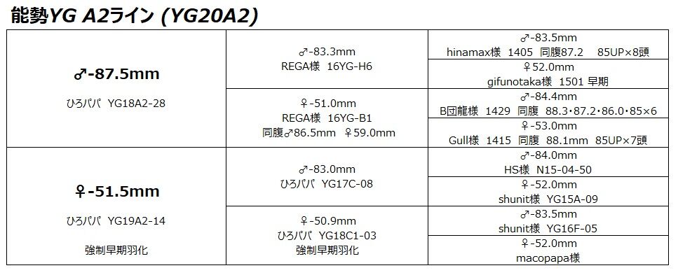 我が家のYG18A2(875同腹)の♀を掛けたラインです。