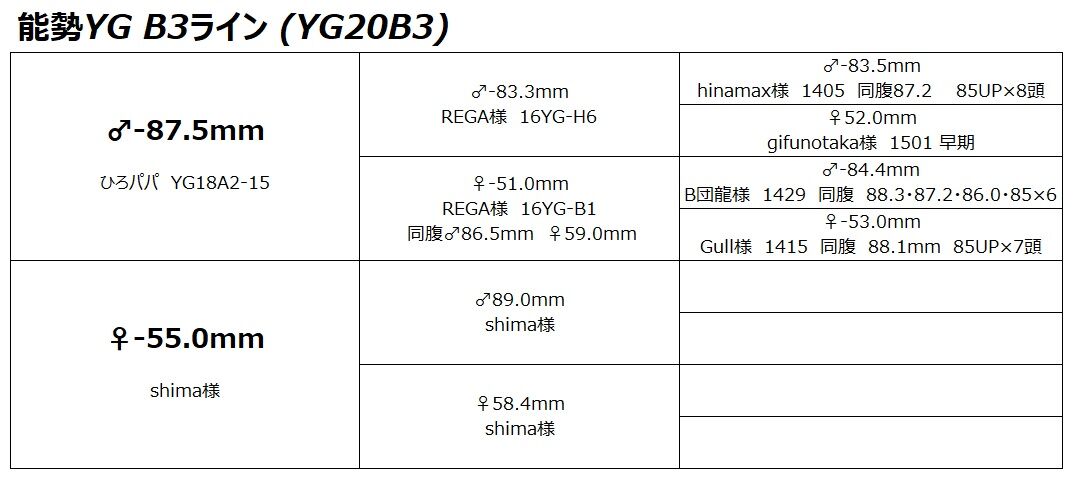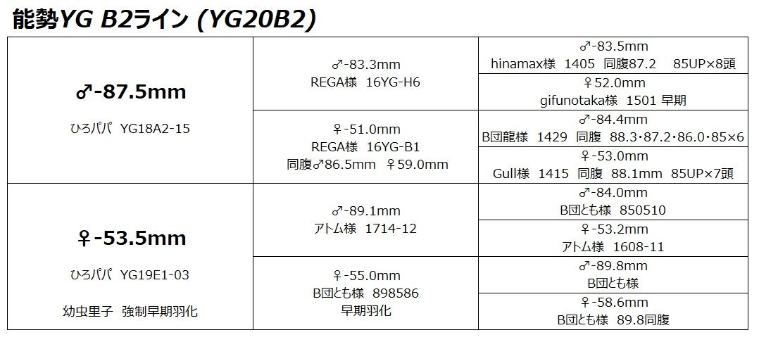 2019年度の羽化結果はまだですが、YG19B2ラインは♂8頭中3頭が40gUPの期待ラインです。