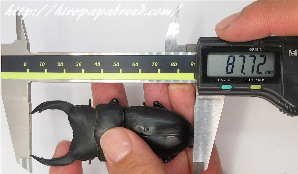 ノギスでは88UPの数値が出ていますが、左顎の開きが若干悪く、僅かに右上翅が短い為87.8mmで管理します。