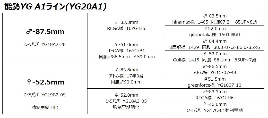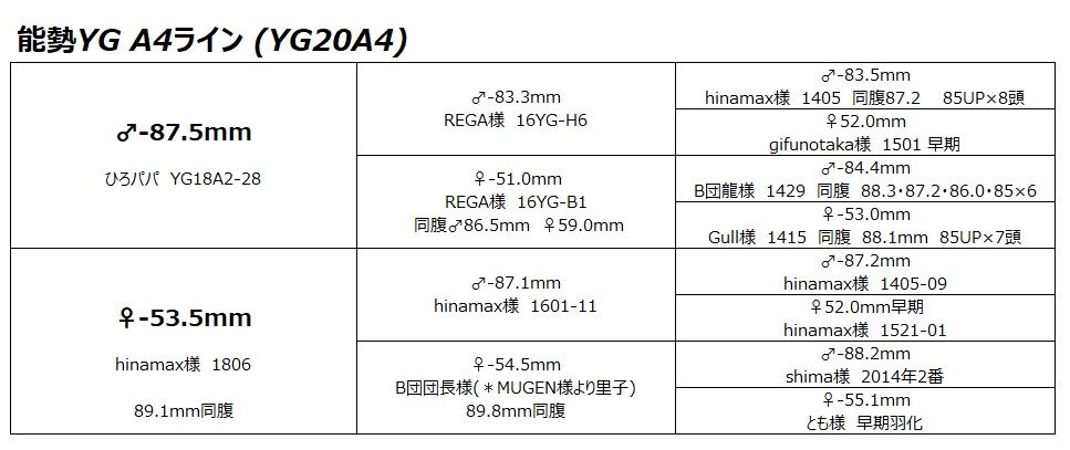 こちらもYG18A2-28(87.5mm)を種♂に使用したラインです。