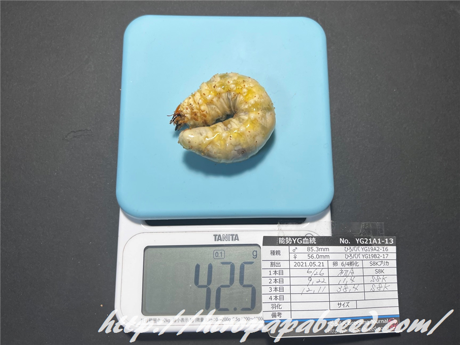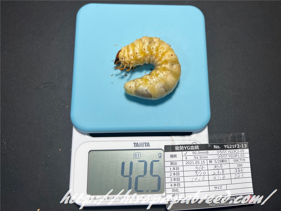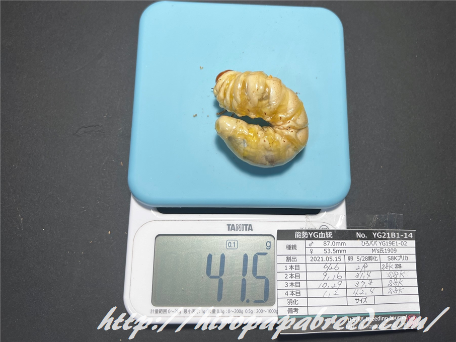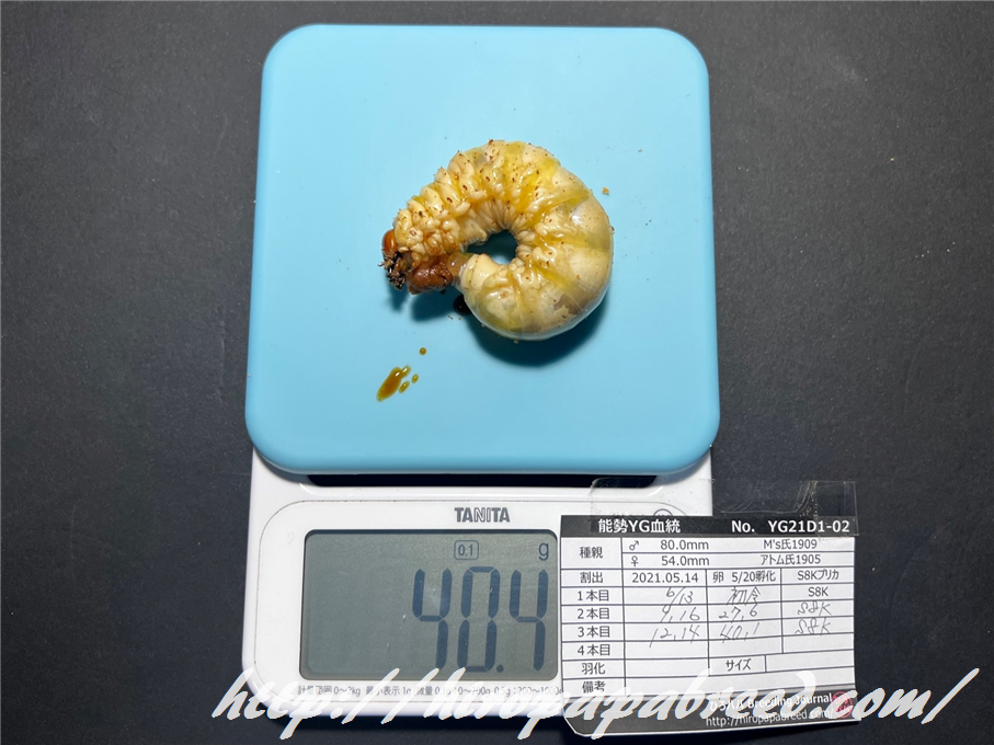 4本目への交換時に40gを超えていた幼虫のみUPします。