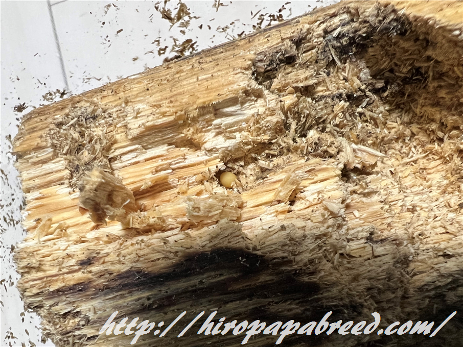 順調に齧っているようで一安心ですので試しに産卵痕を割ってみました。