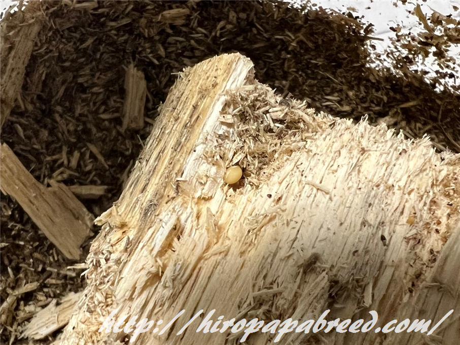 産卵木をひっくり返してまでは確認していませんが、表面はあまり齧っていなくても裏側ばかりを齧っている♀もいるようです。