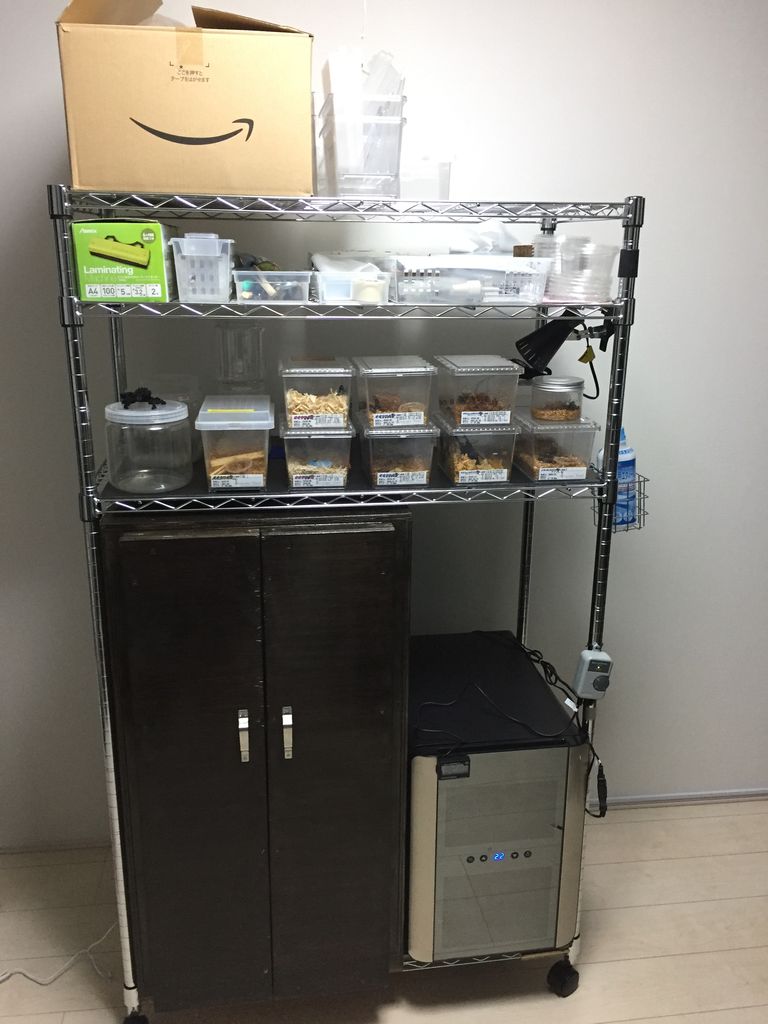 飼育用品をもう少しスタイリッシュに見えるように片づけて完成にしたいと思います。