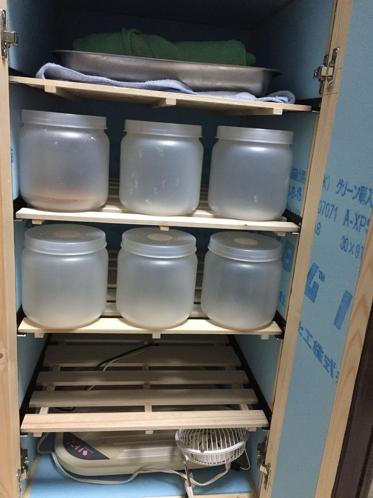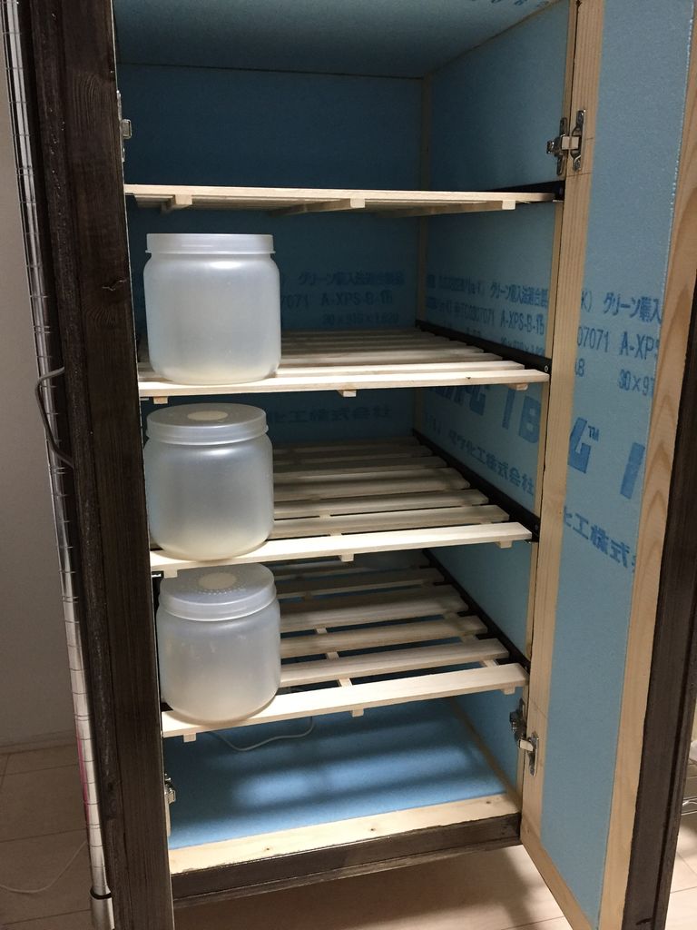 前から拝見させてもらってます。凄いです!完成度の高さに見た目にも拘った素晴らしい自作温室ですね!保冷剤の量・種類、置き場所、ファン位置等の結果も是非更新お願いします。僕は去年の真夏にでかい発泡スチロール2個で30本の菌糸ボトルを保冷材管理して苦労したので来年は近くの昆虫専門店でレンタルルームをかりようかと考えてましたが、ひろパパさんの記事みて、自作する気になりました!いつになるか分かりませんが(笑)これからも楽しみに記事拝見せてもらいます♪