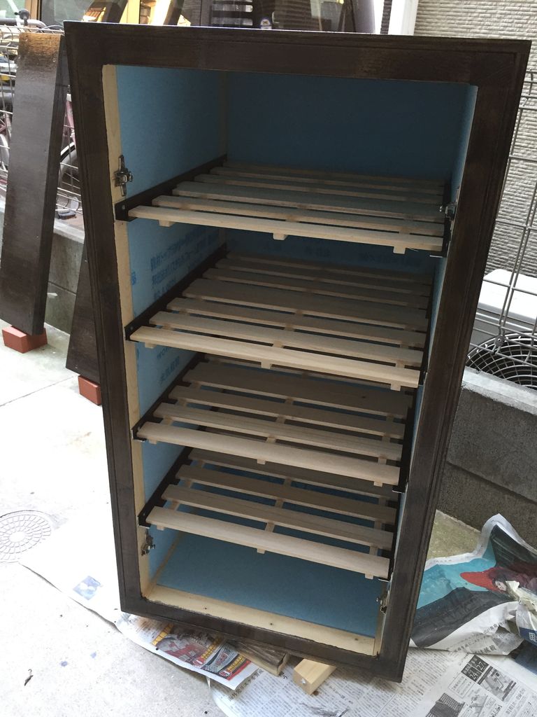 外装はほぼ仕上がりましたので、棚板を設置加工していきます。