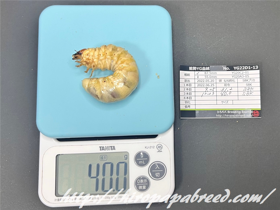 過去最大頭数で臨んだ2022年度ですが、何とか過去最多の40gUP幼虫を揃えることができました。
