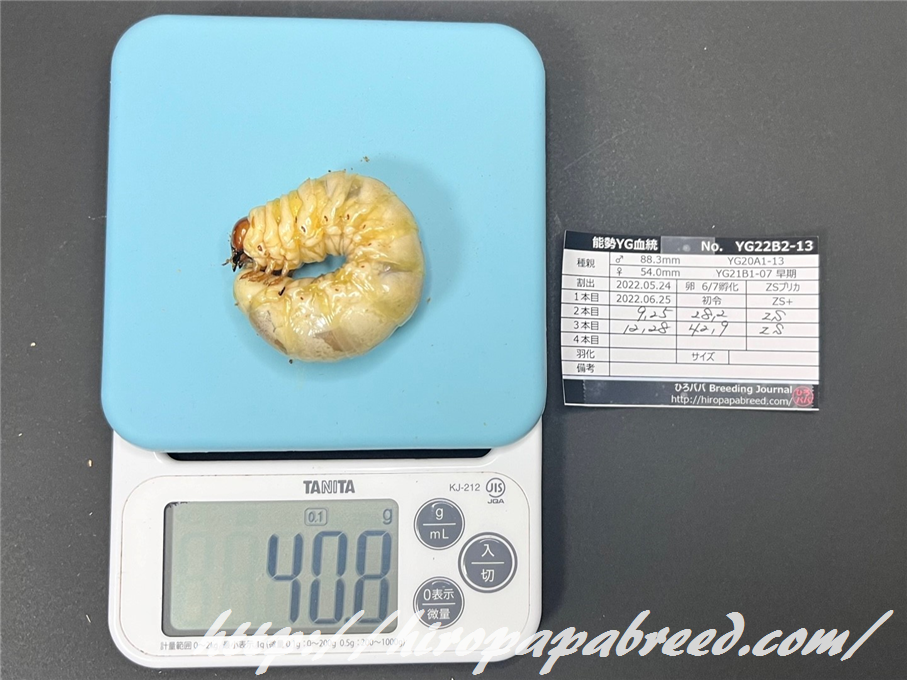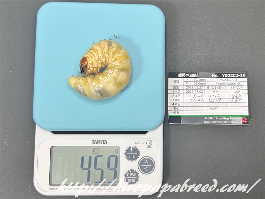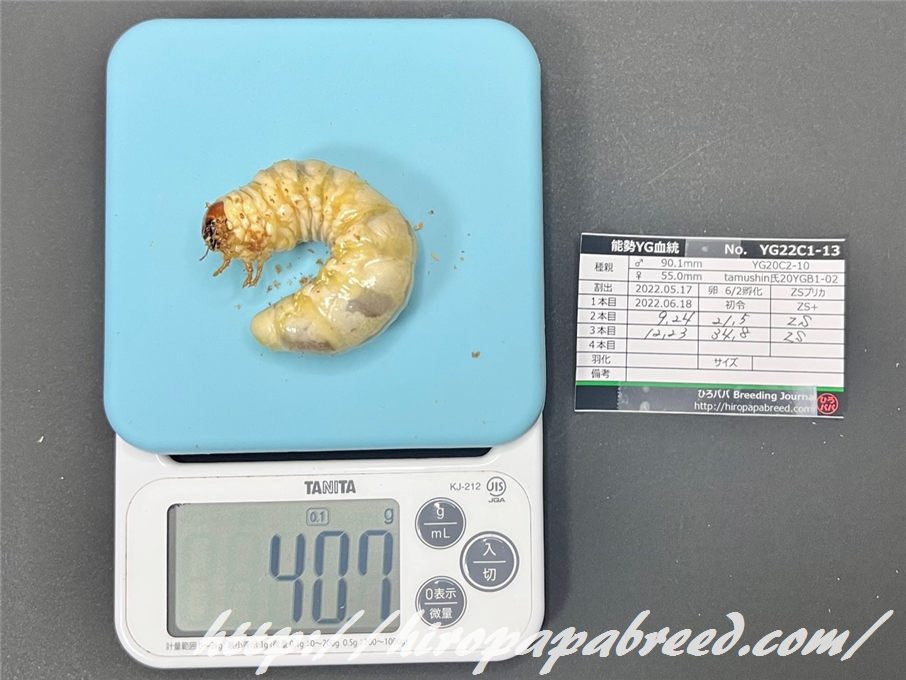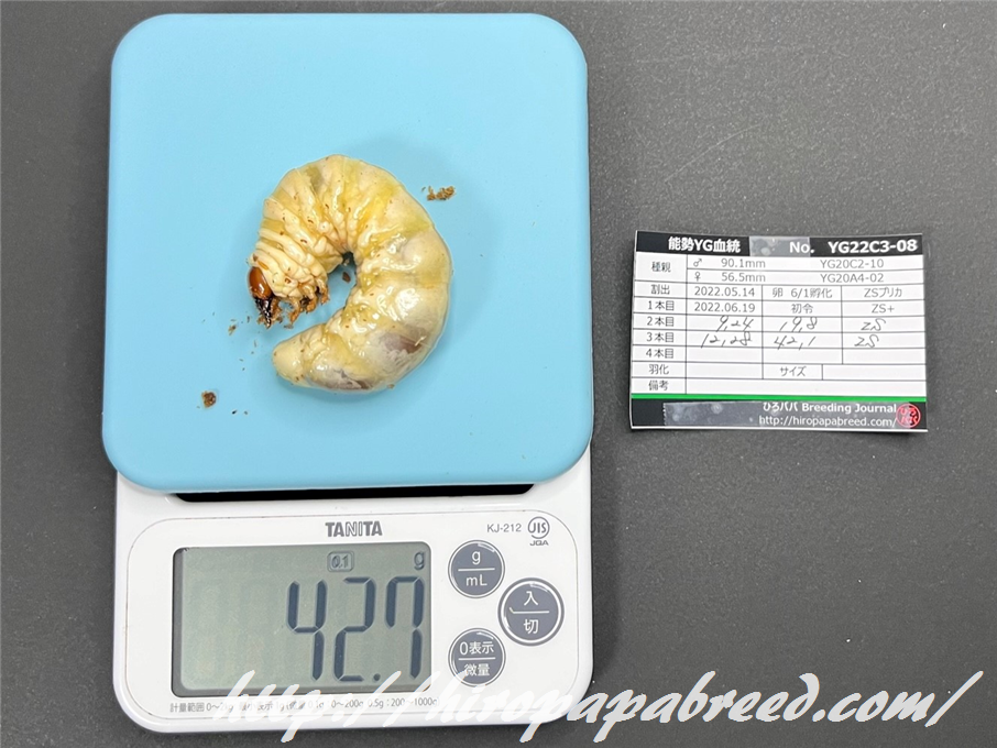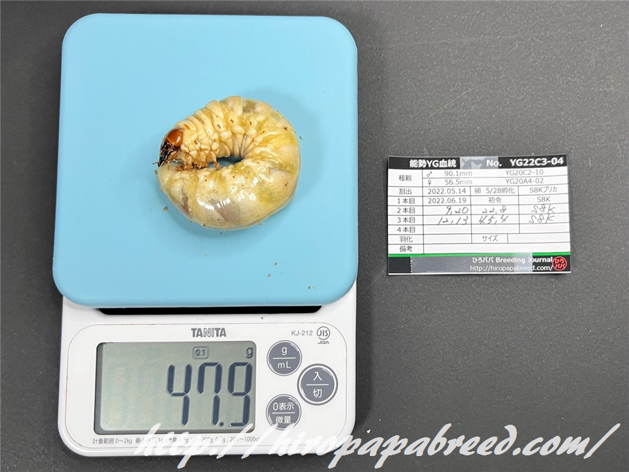 YG22C3-04 最終体重47.9g(2022年度最大幼虫)
