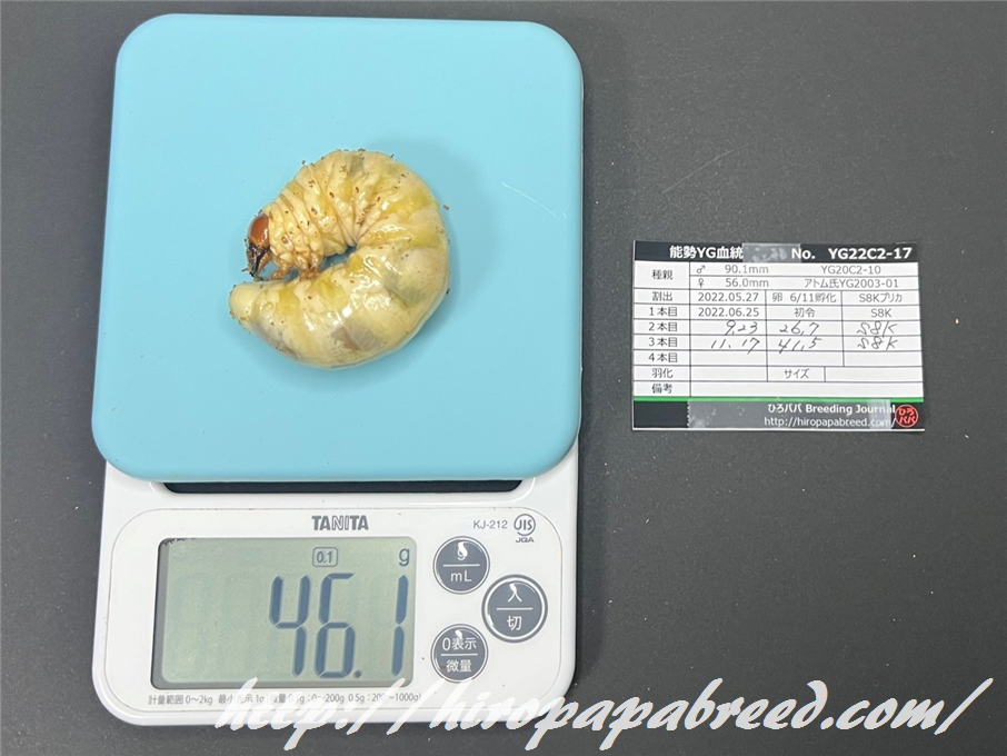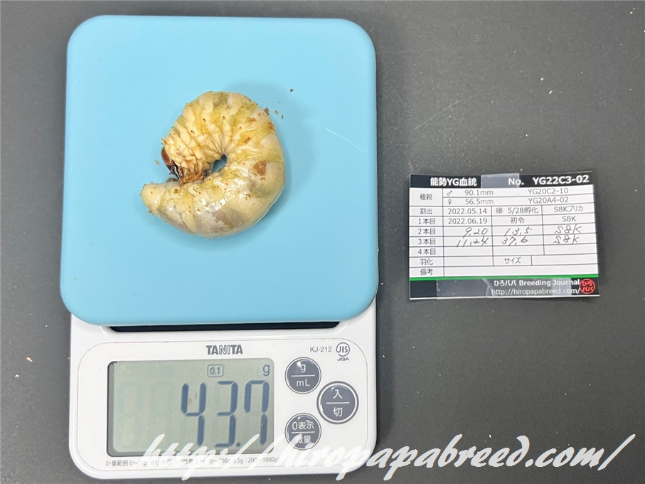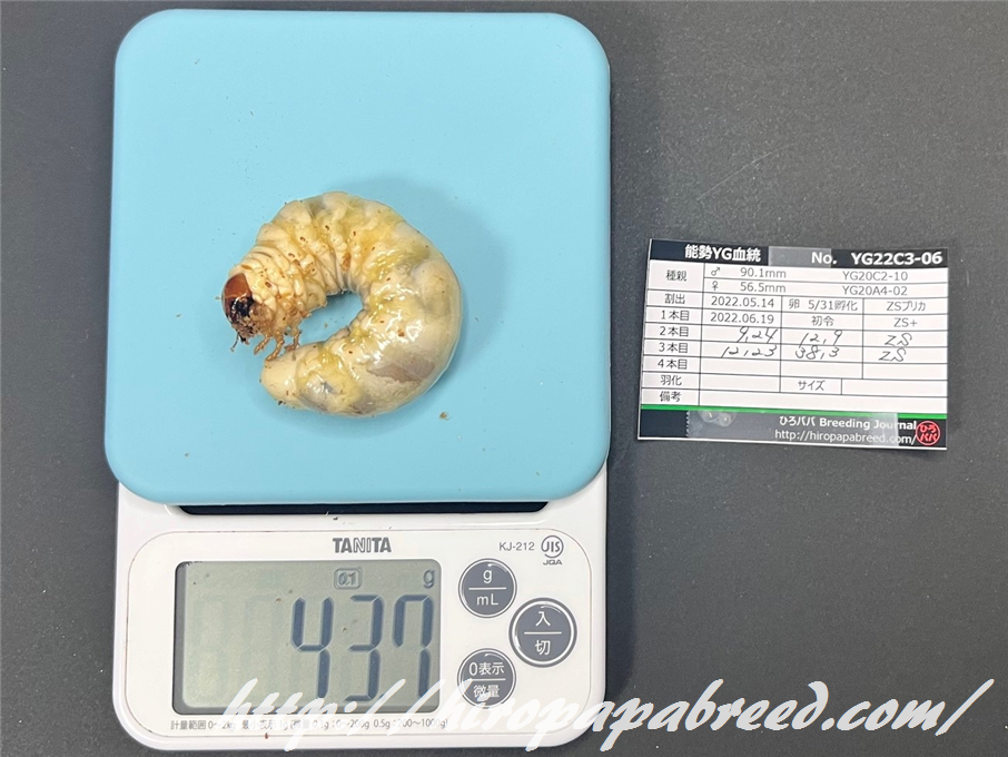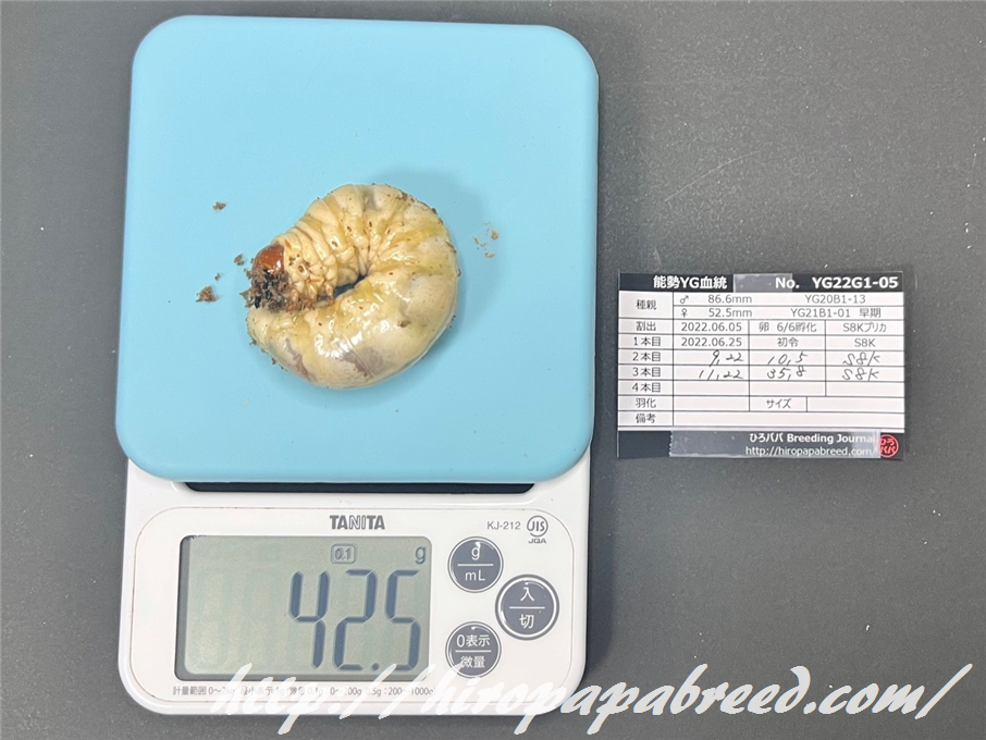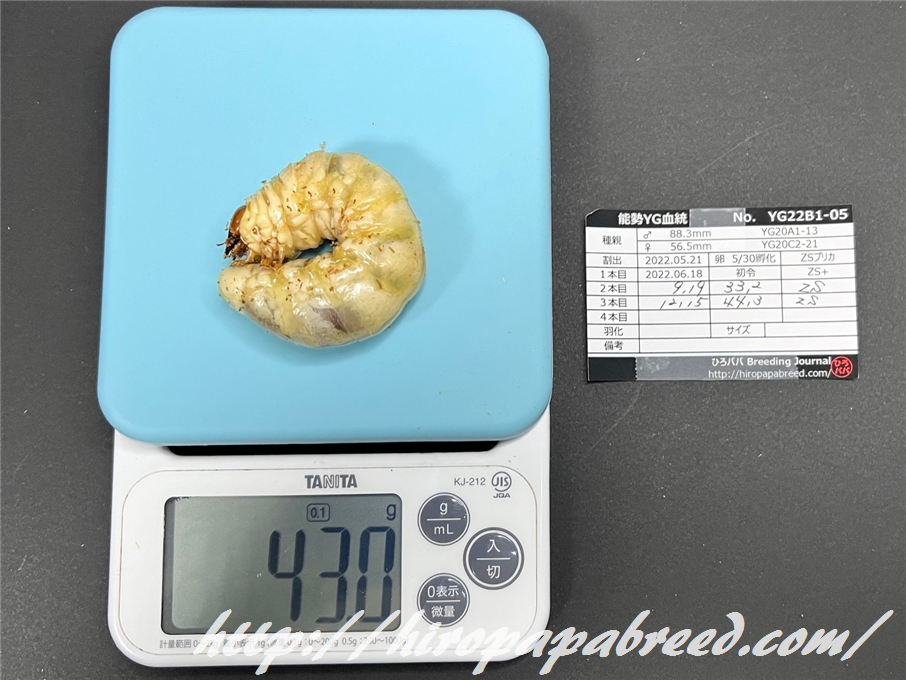YG22C3-04 最終体重47.9g(2022年度最大幼虫)