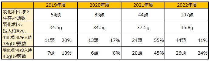 過去3年の最終ボトルでの40gUP頭数比較とまとめ。