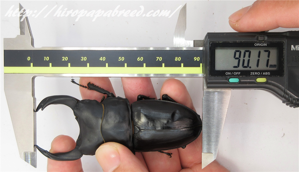 我が家のこの1番ライン種♂90.4mmも遡れば大興奮した初年度ブリードの羽化個体83.0mm。