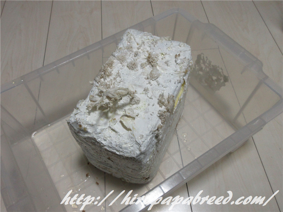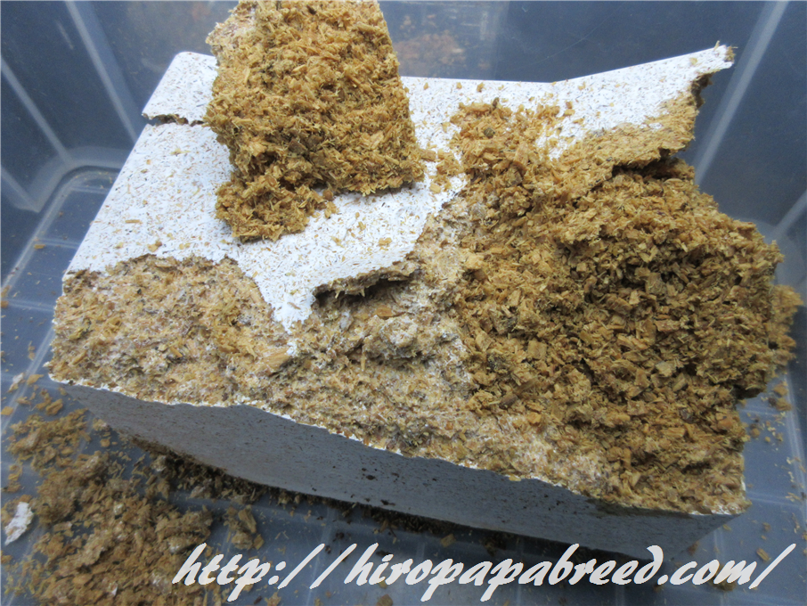 どうせお試しをするなら、産卵セットもお試しをしてみようと4本目交換で残ったジックリ寝かされたブロックを取り出してみました。
