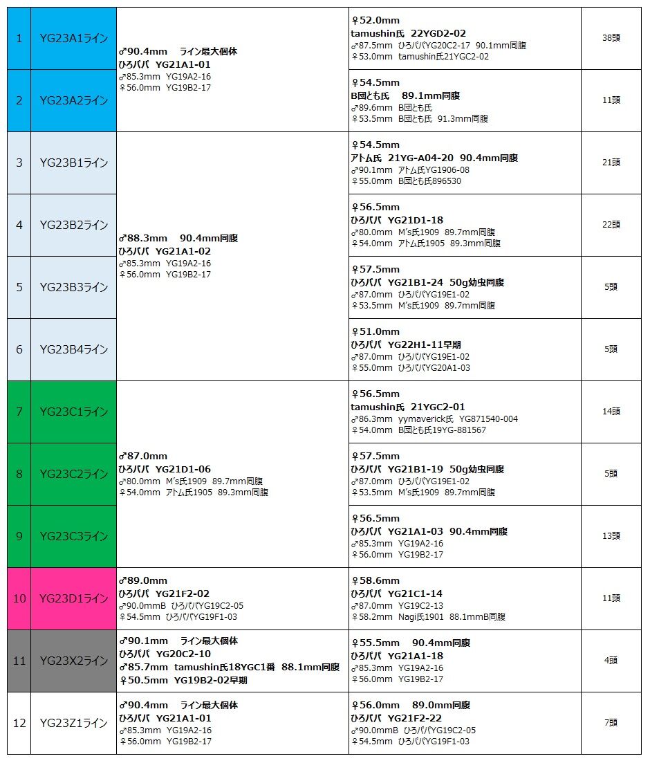 我が家の2023年度能勢YGブリードのラインナップです。