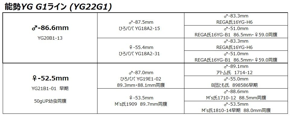 種♂86.6㎜(YG20B1ライン)は我が家の代表個体ラインYG18A2ラインのインライン個体です。