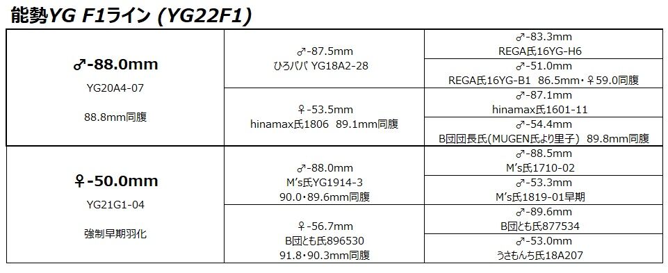 種♀YG21B1ラインは50g幼虫同腹個体。