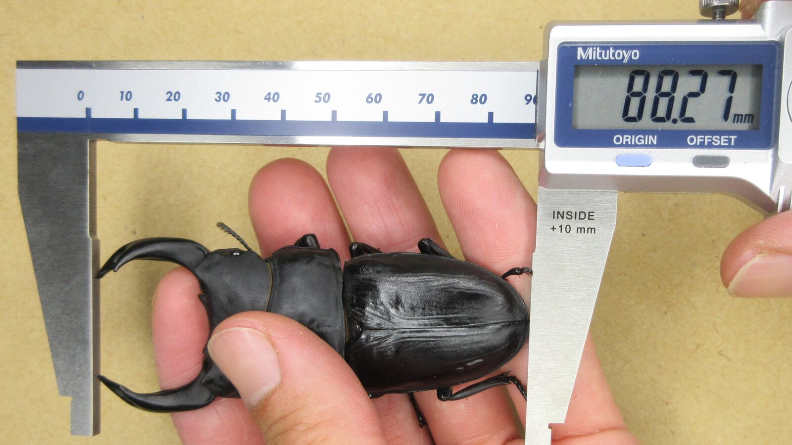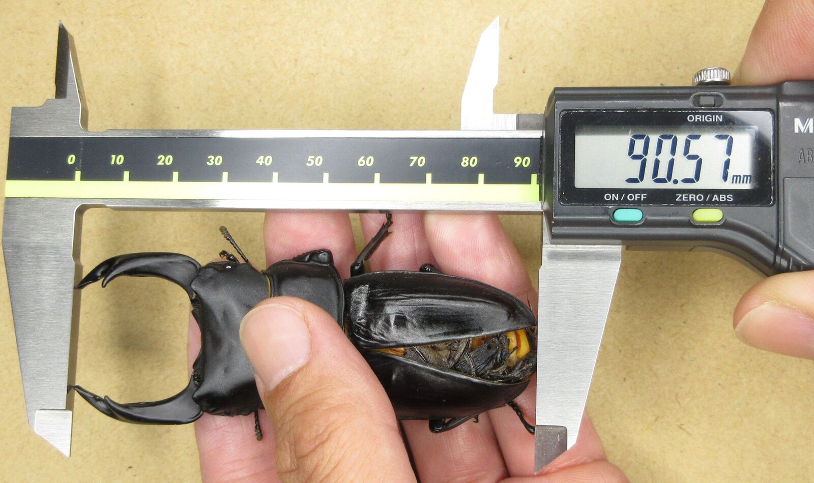 翅パカで左右の上翅にジョウを当てれませんが、参考計測値では完品羽化していれば90mmを超えていたであろう個体も数頭出ていました。