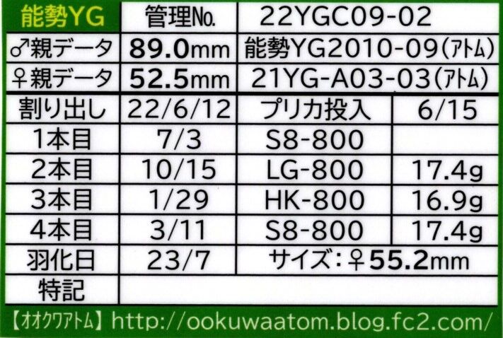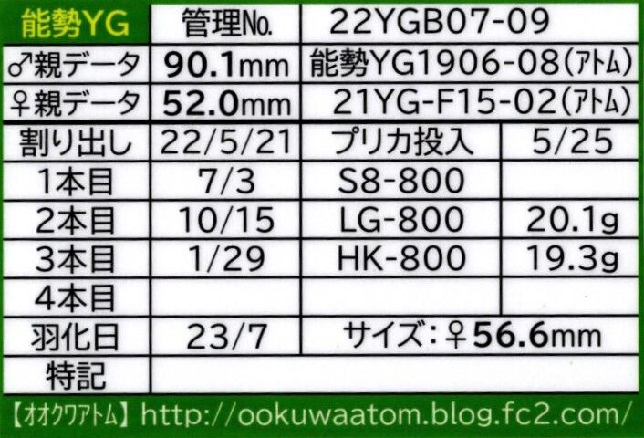 我が家の能勢YGブリードにおいて、ずっとお世話になっているアトムさんより補強させて頂きました。