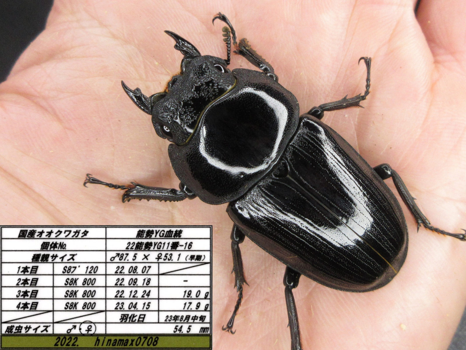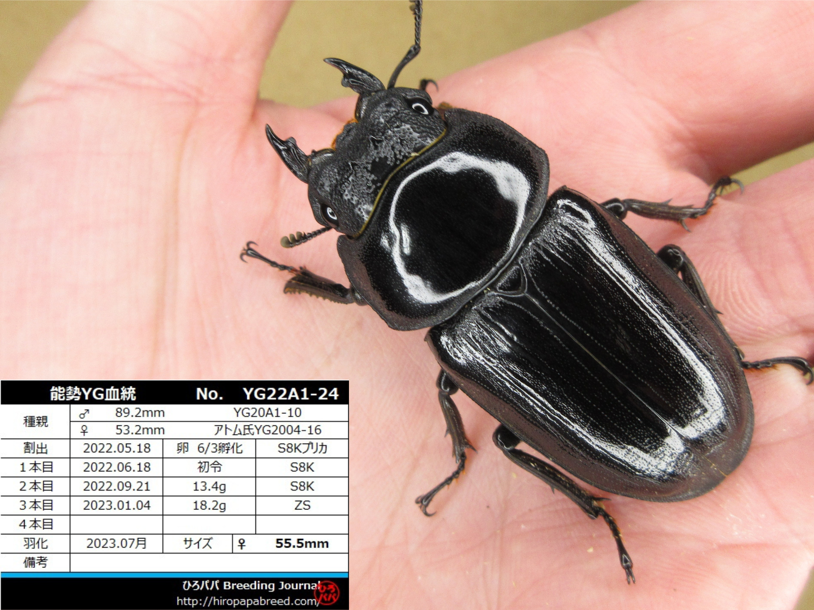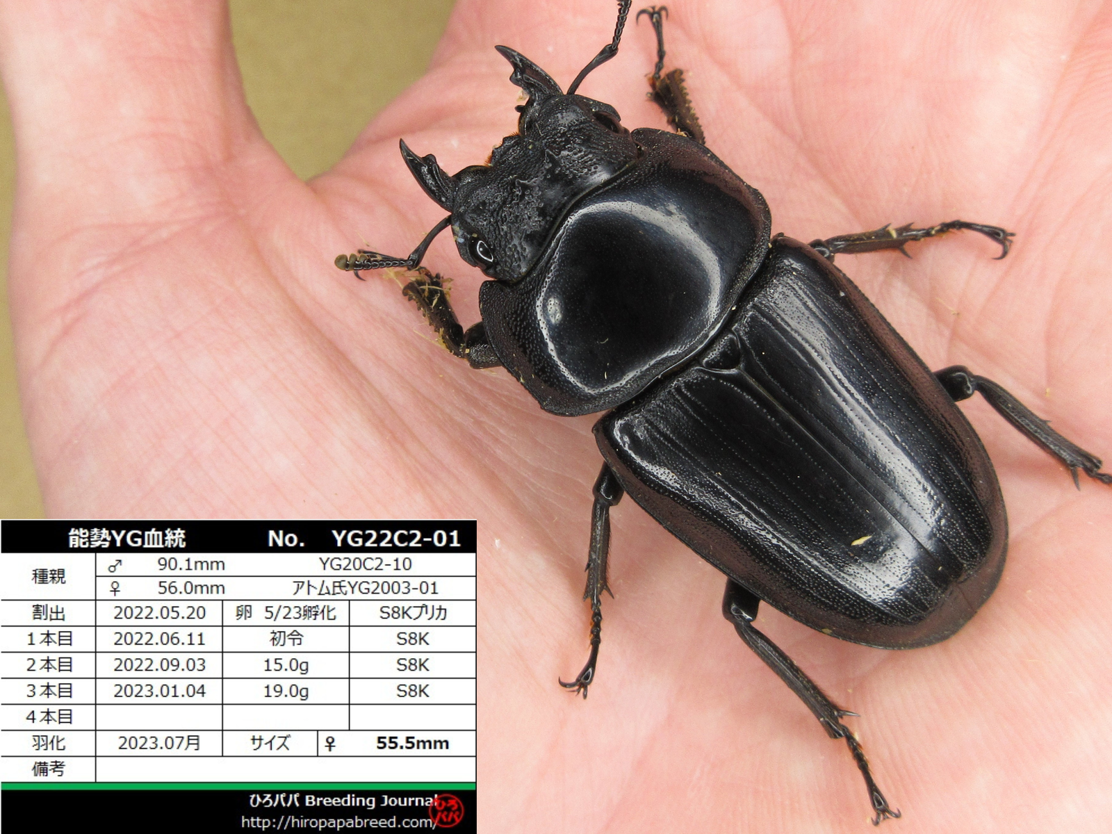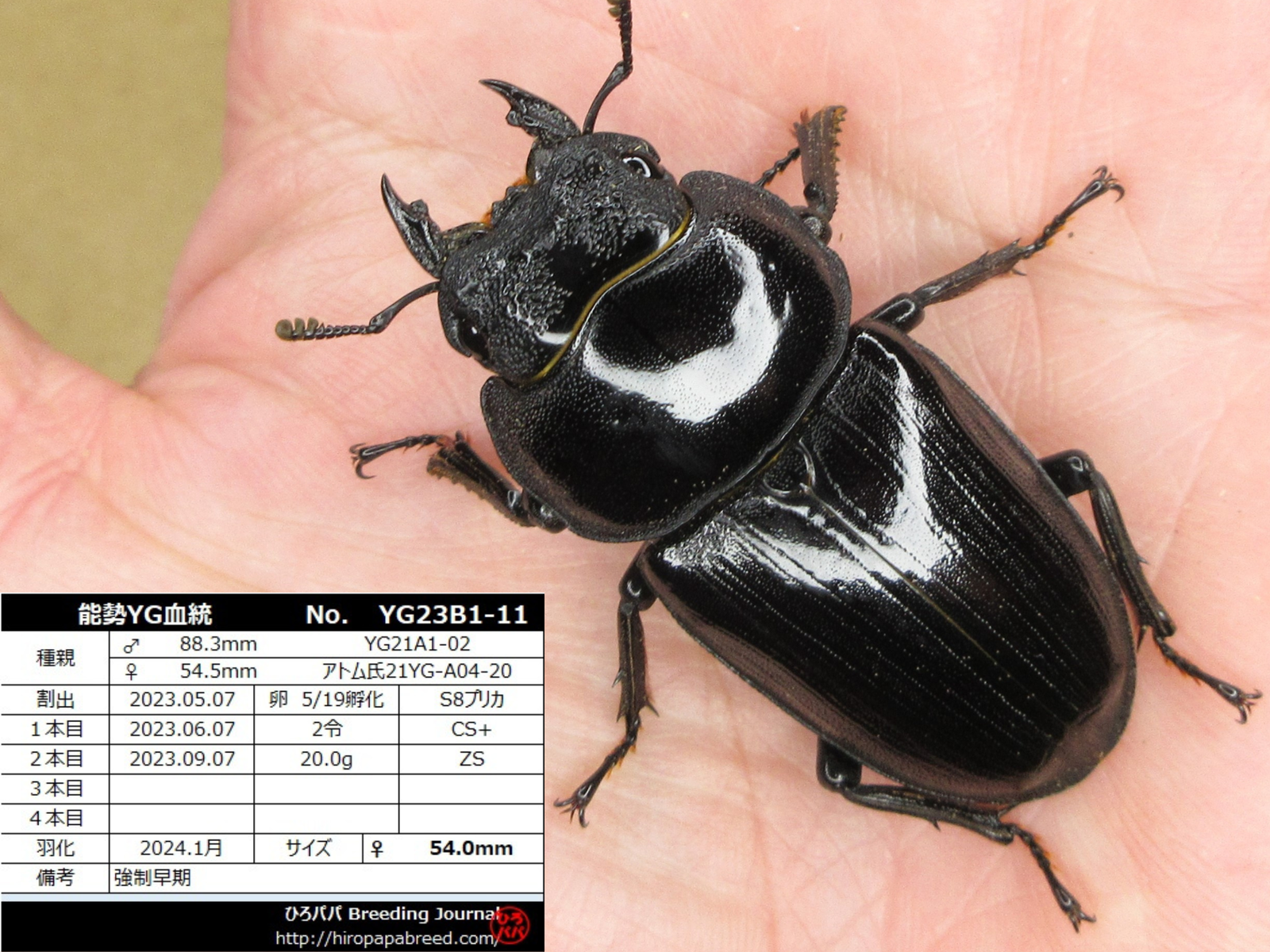 もう1♀には管理失敗の中、運良く羽化してくれた早期♀YG23B1を。