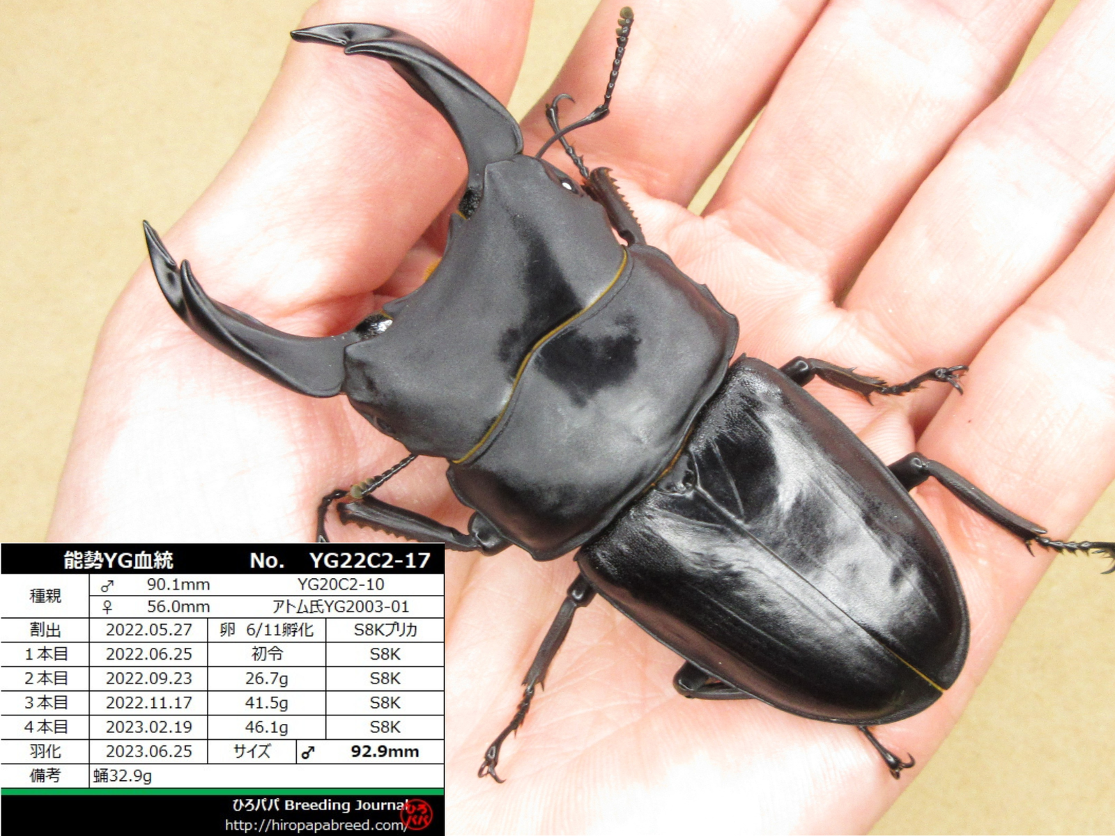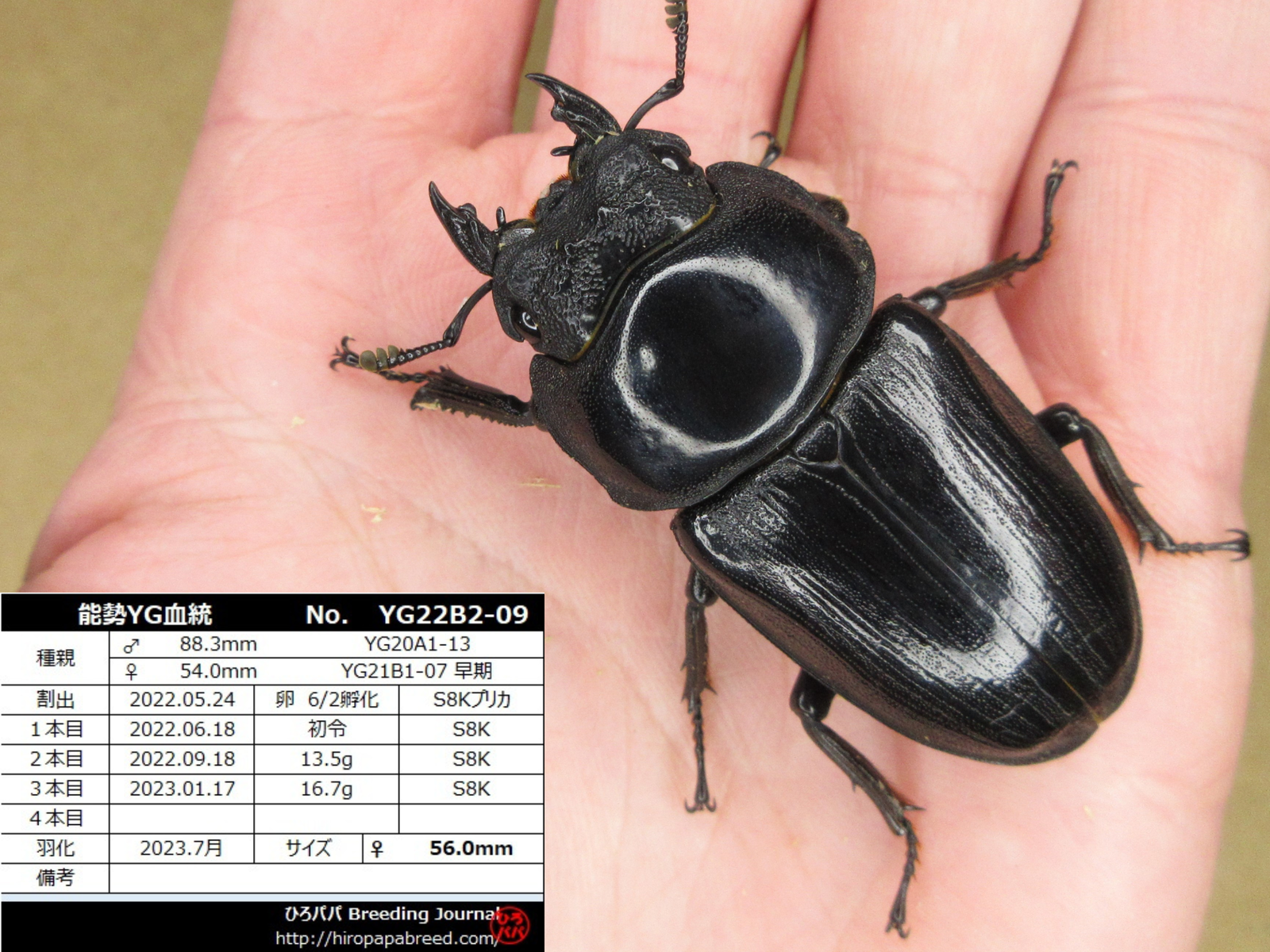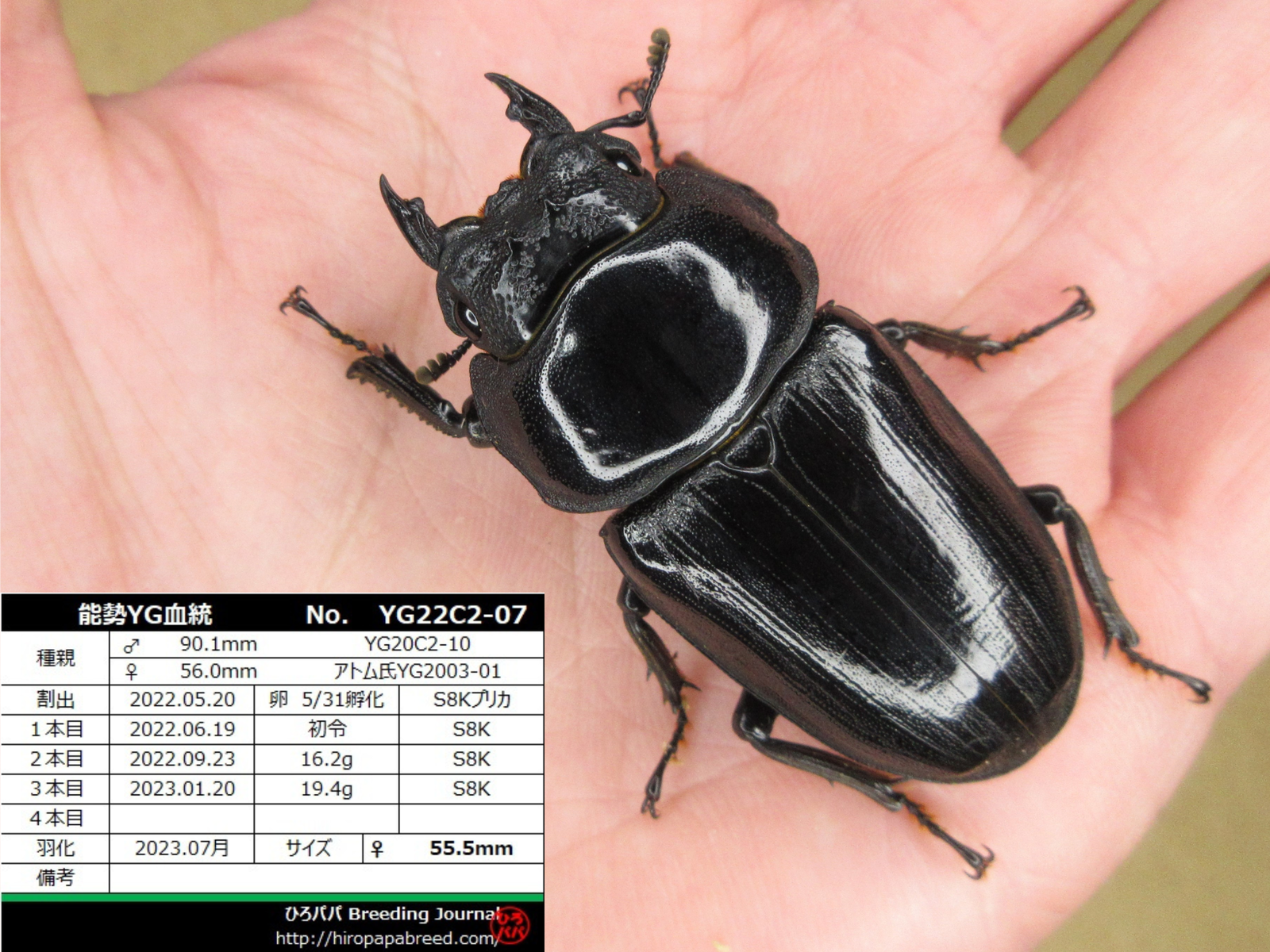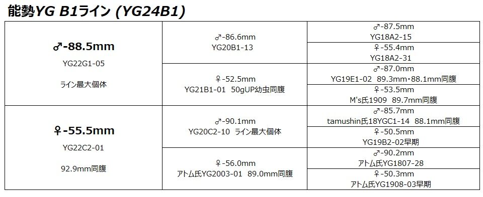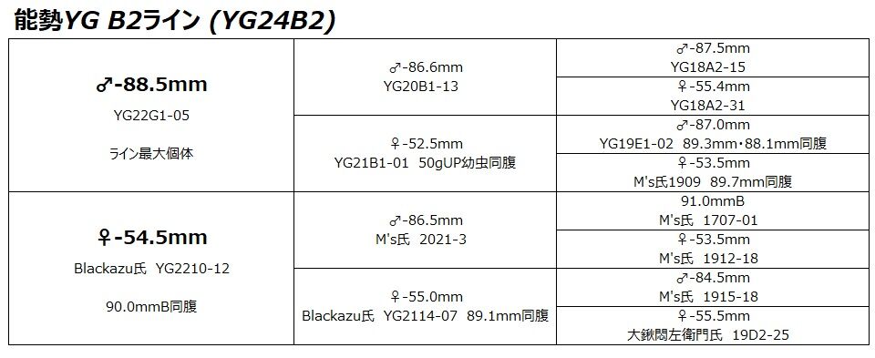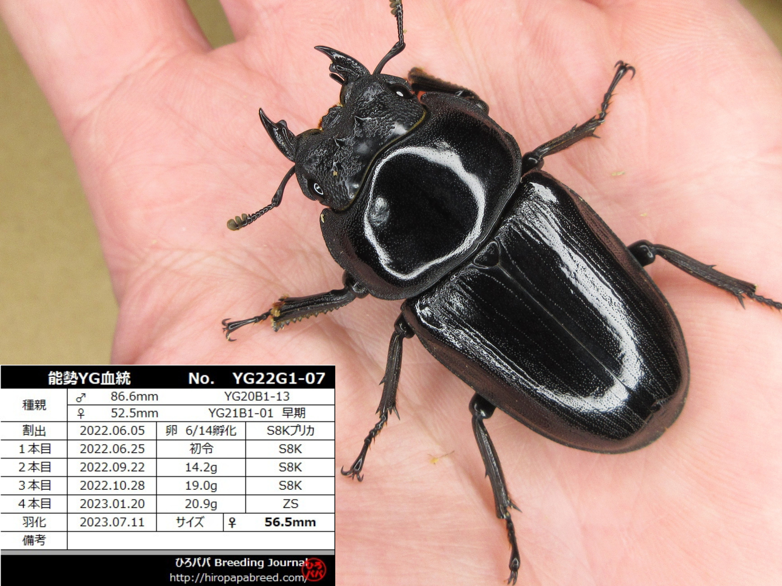 Bラインの種♂にはYG22G1ライン最大個体を。