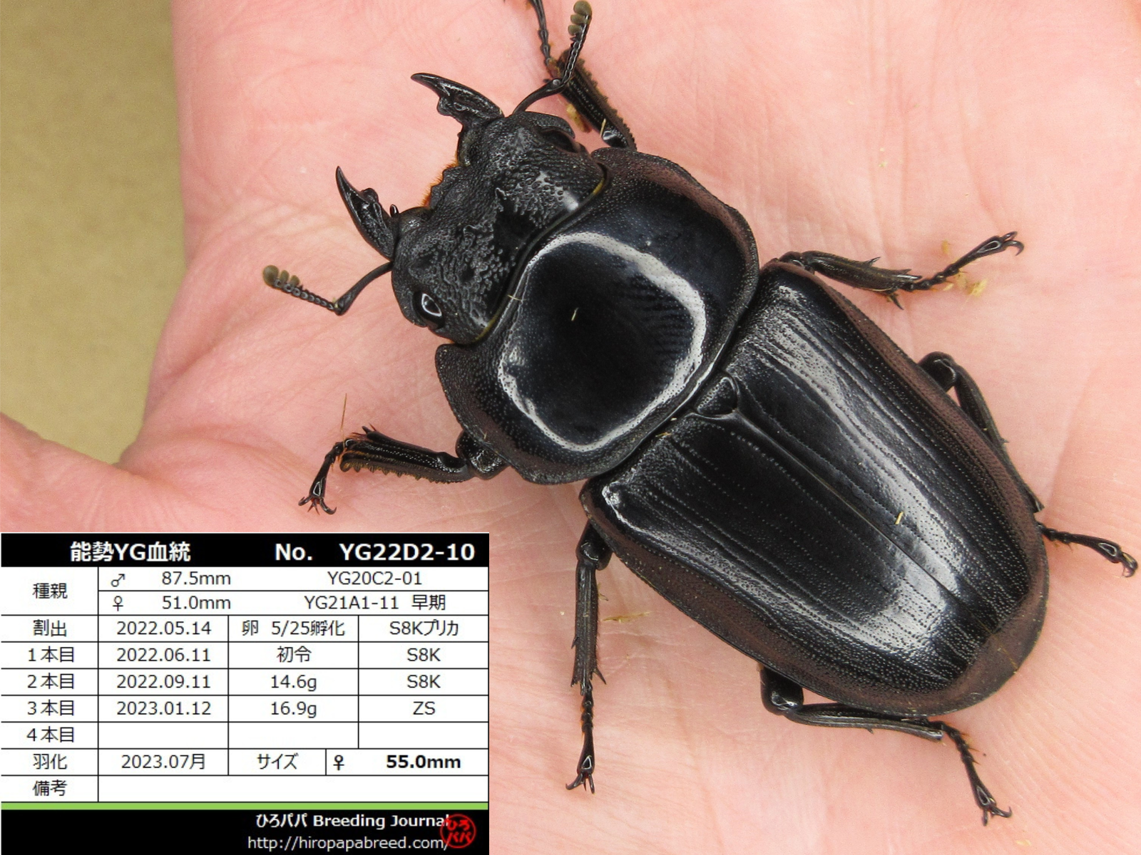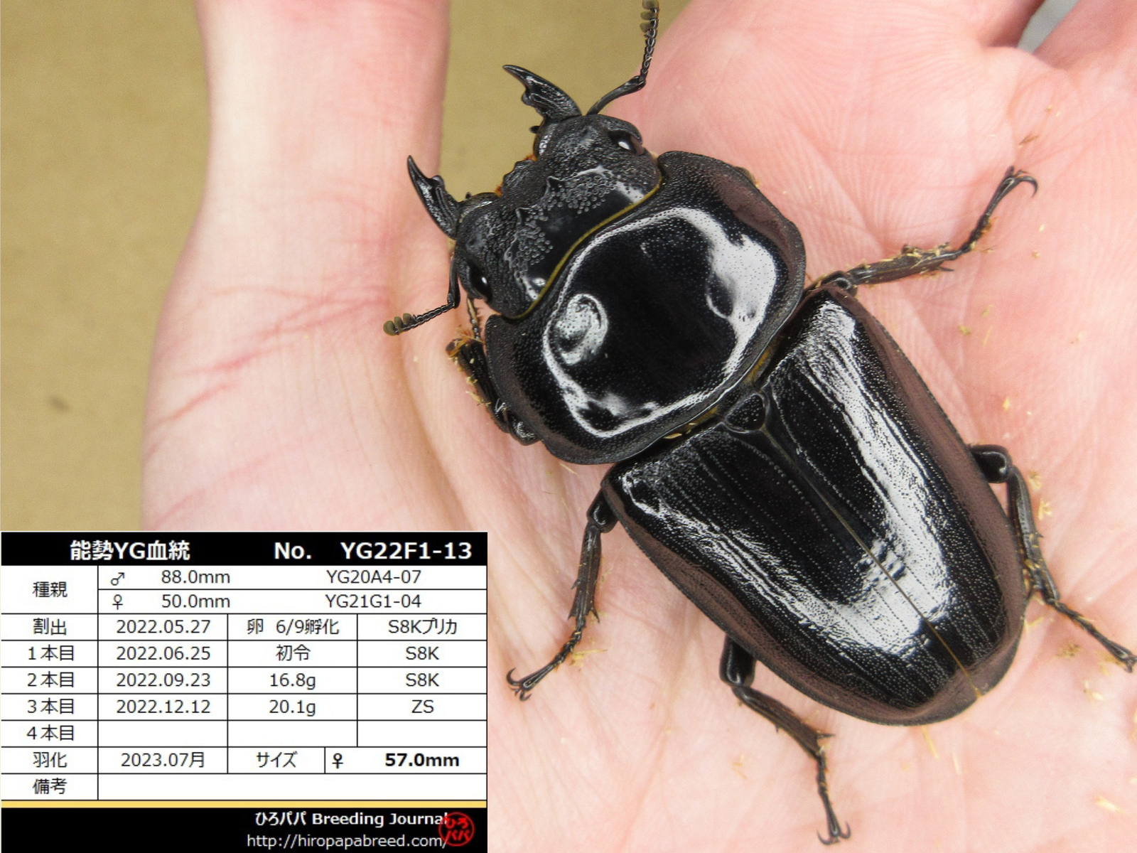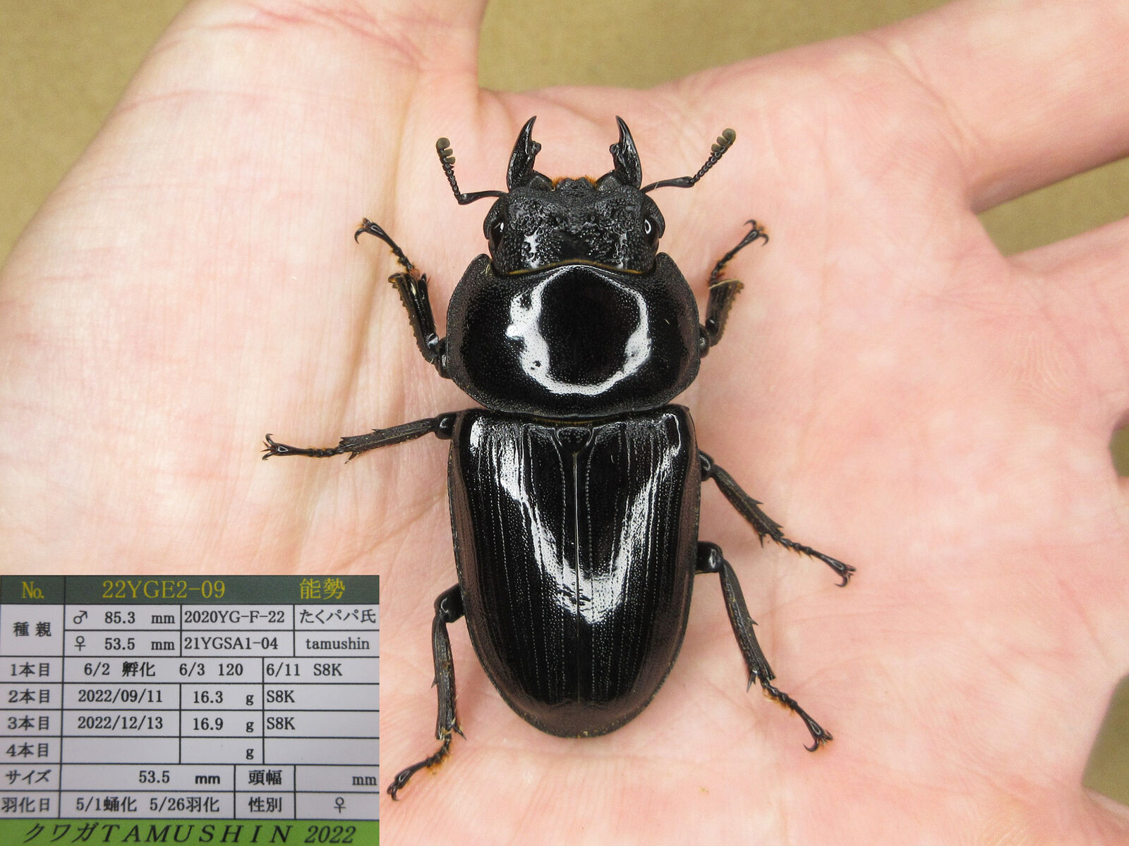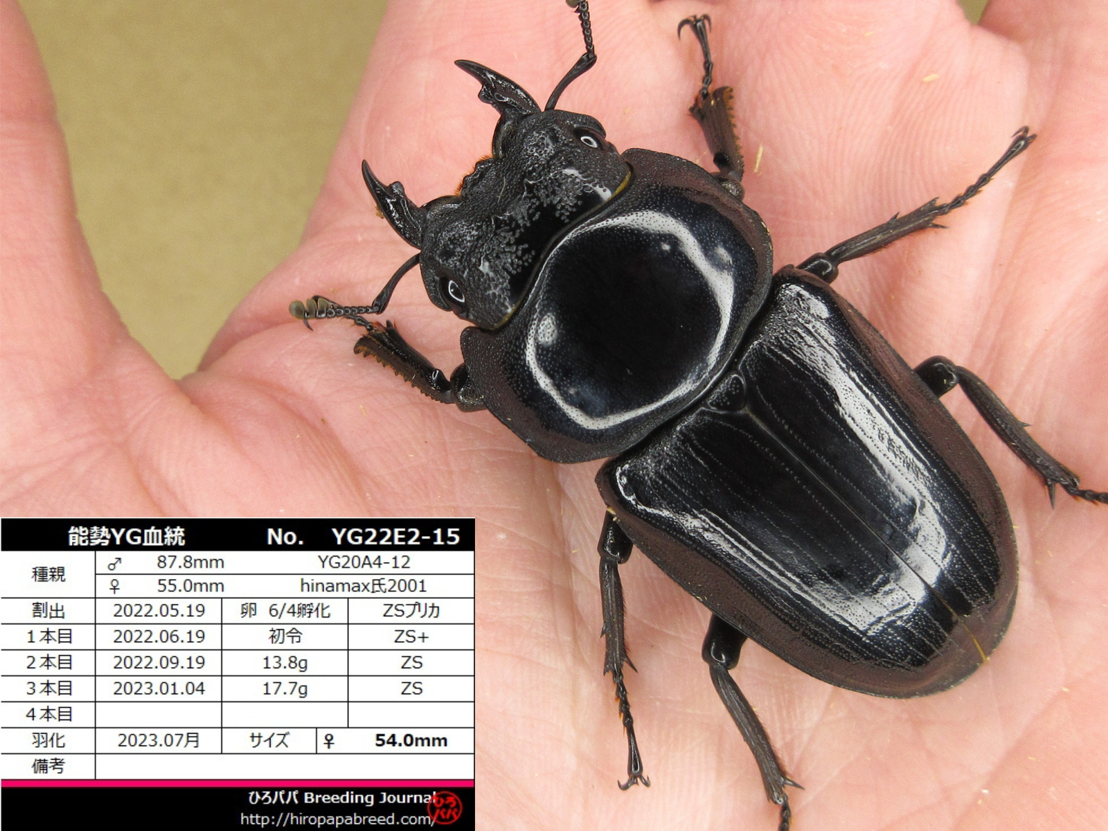 Bラインの種♂にはYG22G1ライン最大個体を。