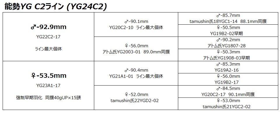 必ずしも最大個体を1番ラインにしない我が家のライン番号振りですが、2020年度に初めて90mmUPを達成した時もCライン、2022年度にマイベスト92.9mmを達成できたのもCラインという事からゲン担ぎの意味も込めてCラインでのブリードにしました。