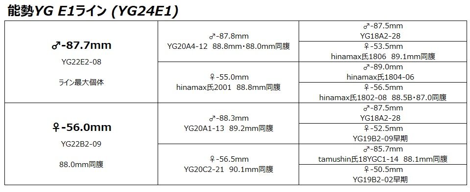 YG23A1ラインは♂20頭中16頭が40gUPというモンスターラインになってくれましたので早期♀パワーも相まってどうなるんだろうとワクワクが止まりません。