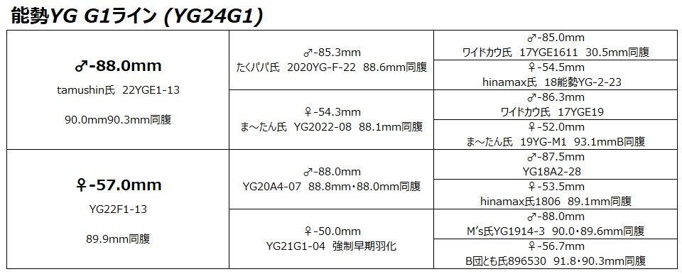 上記同腹♀使用ラインでも書きましたが、このYG22G1ライン…何だかワクワクしています。