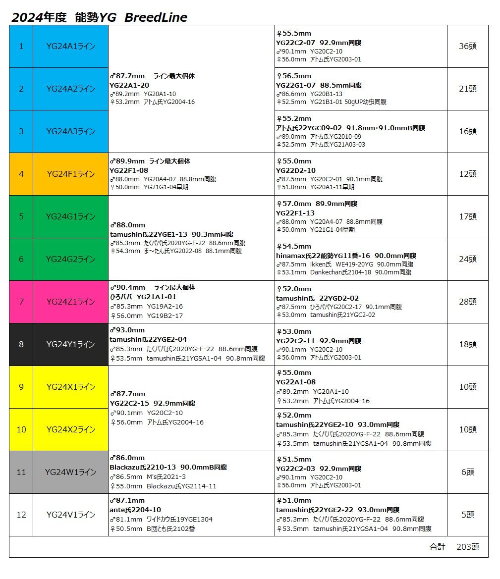 2024年度オオクワガタ能勢YG産卵結果とブリードライン