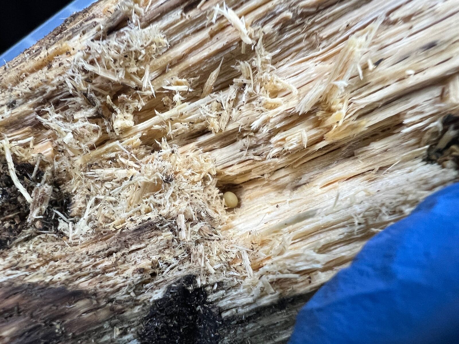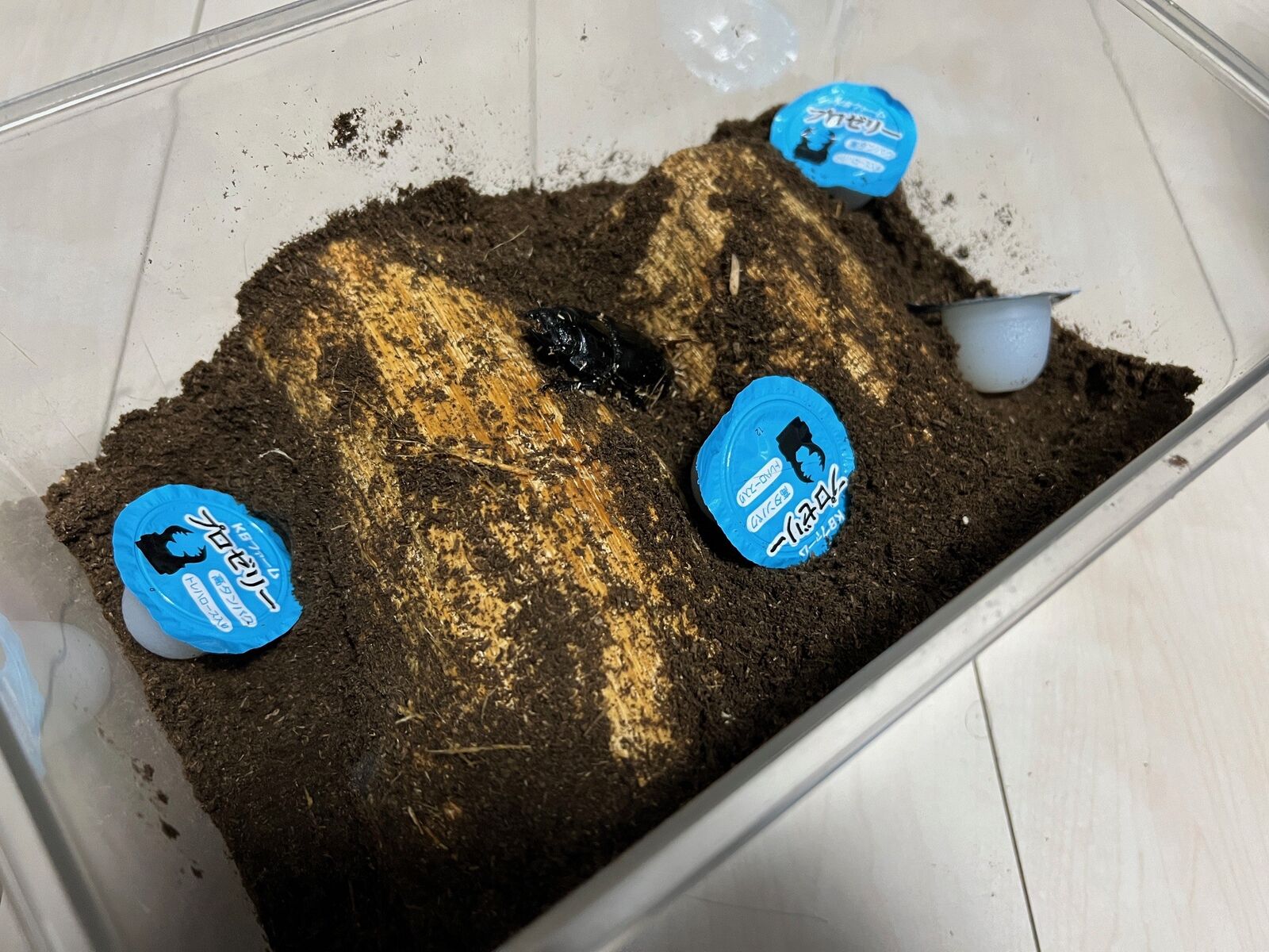 以前の産卵セットでは全く反応してくれなかった♀YG23A1-17でしたが、この泣きのセットでは材を齧ってる!!!