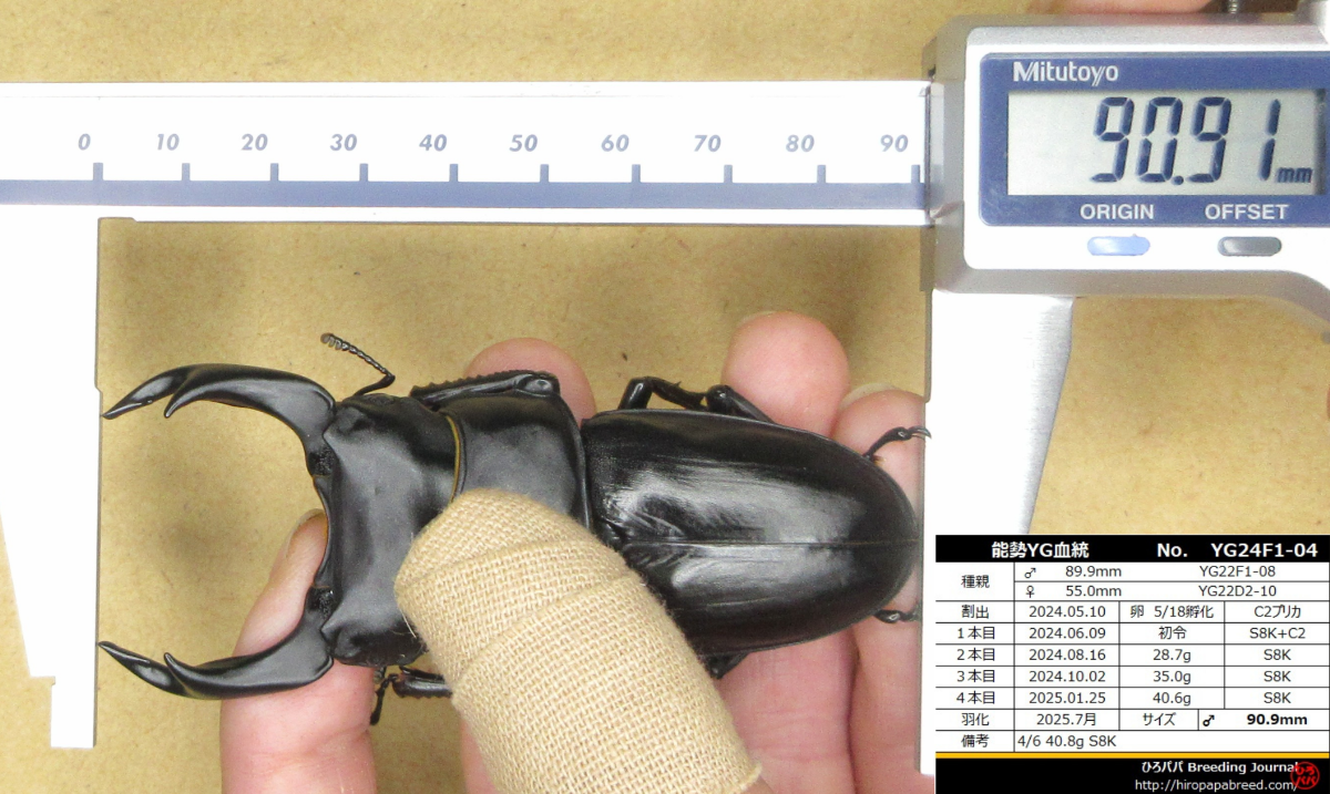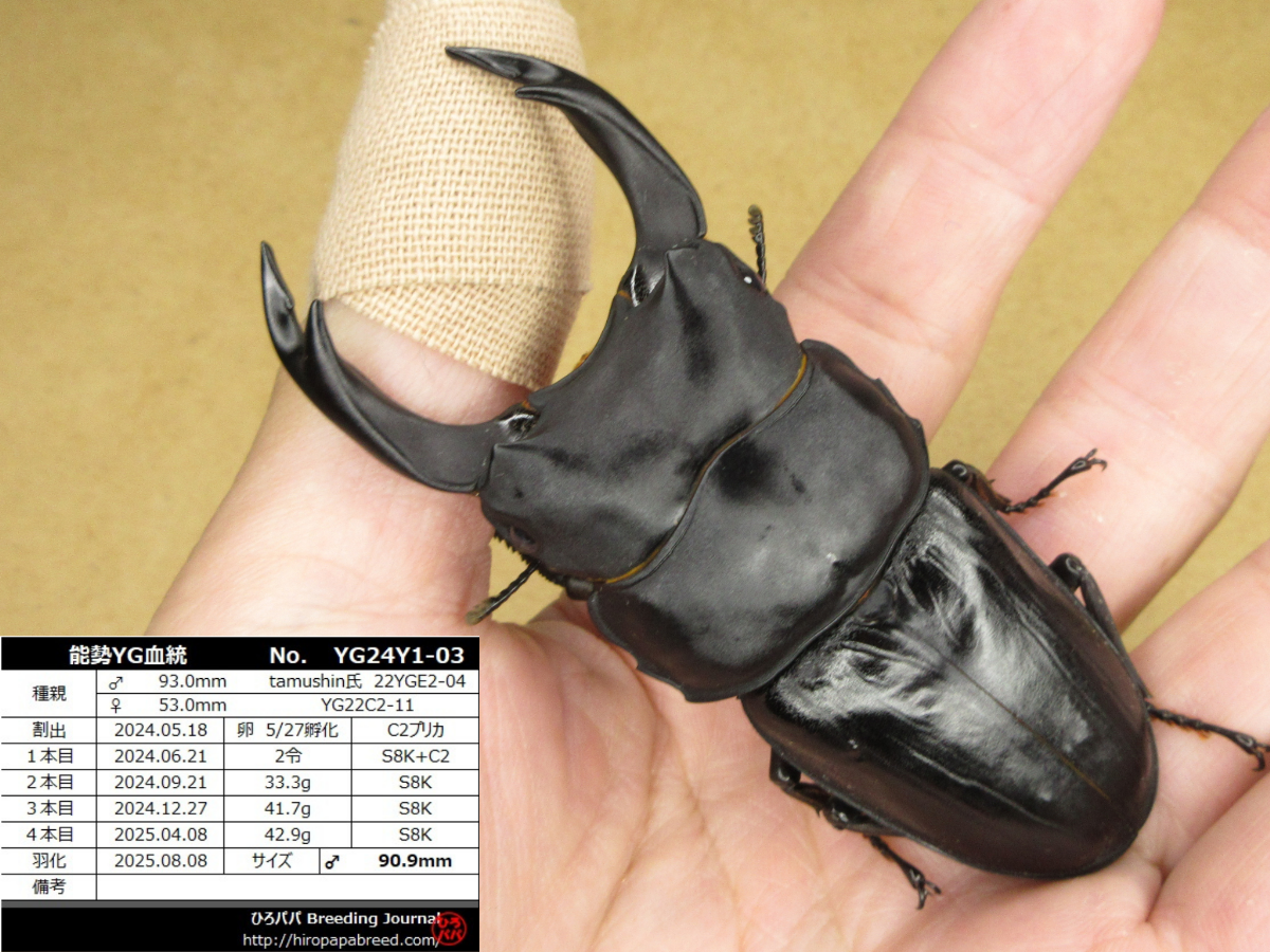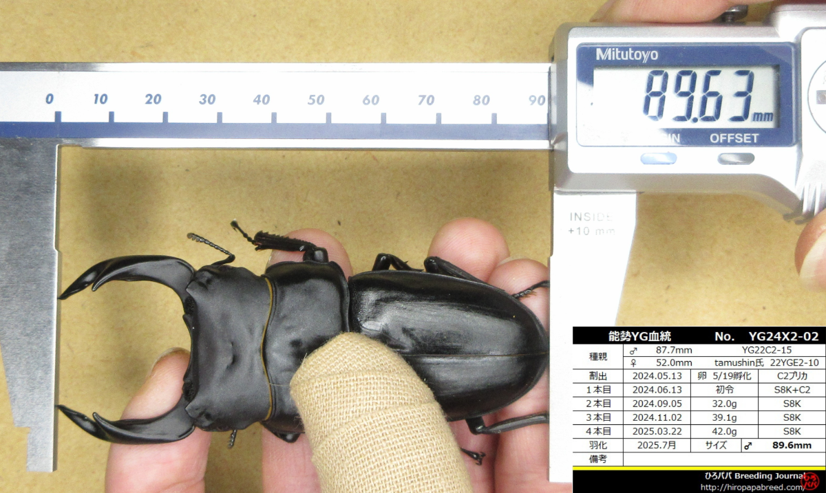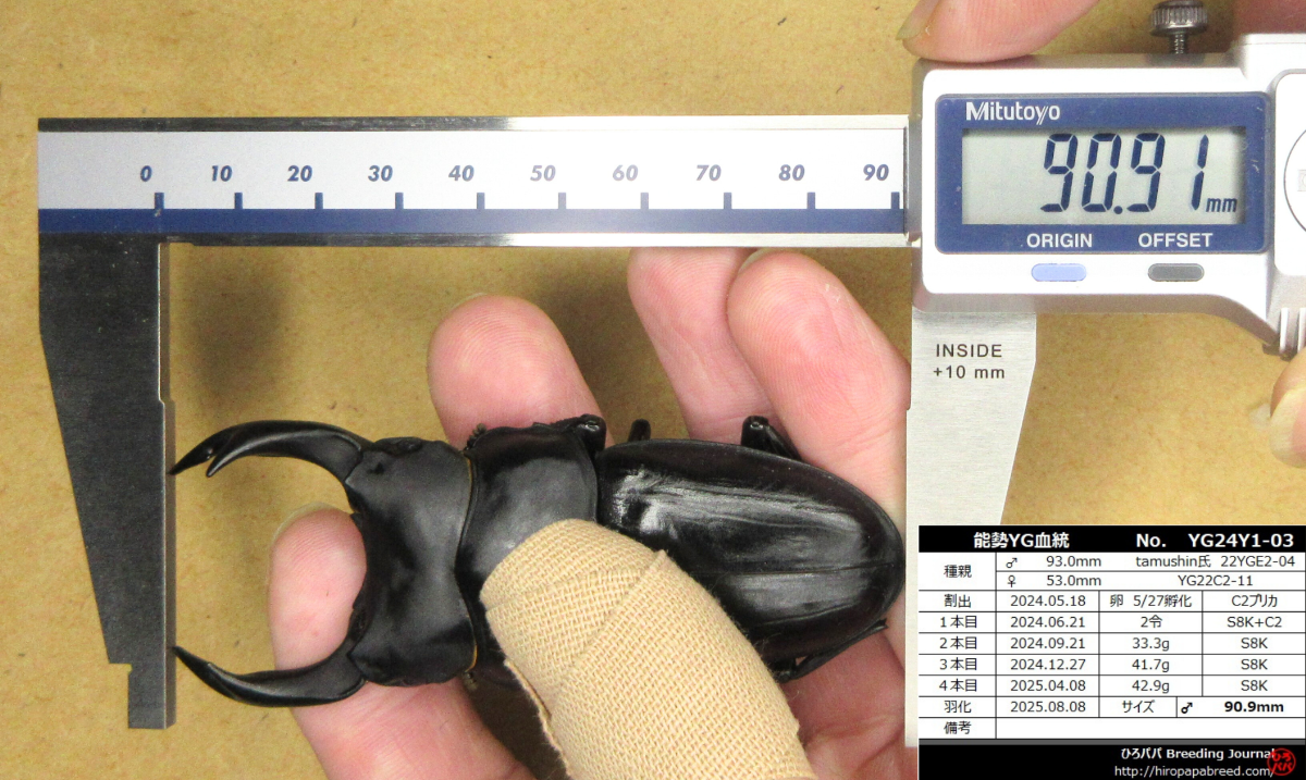 このラインはtamushinさんが作出された93.0mmという驚愕サイズの♂に我が家の♀を掛けてくださった最高のライン。