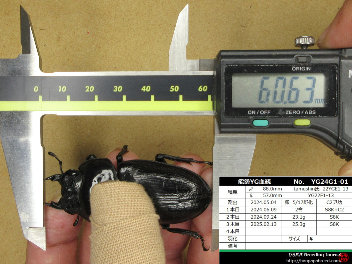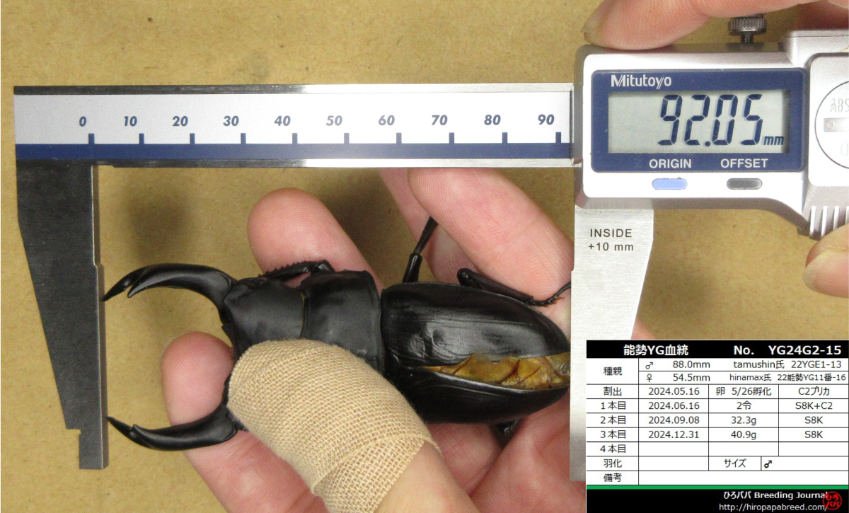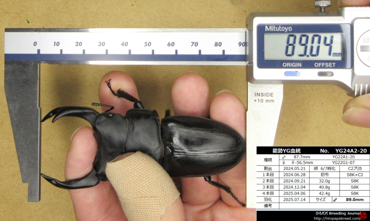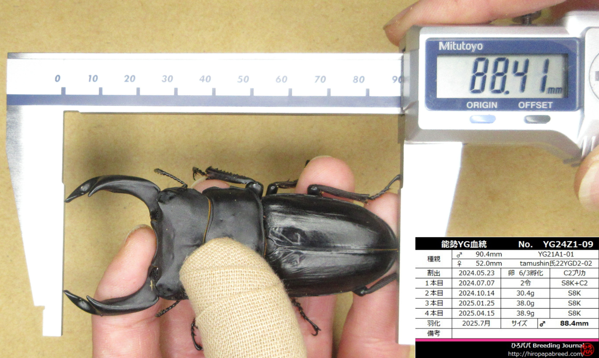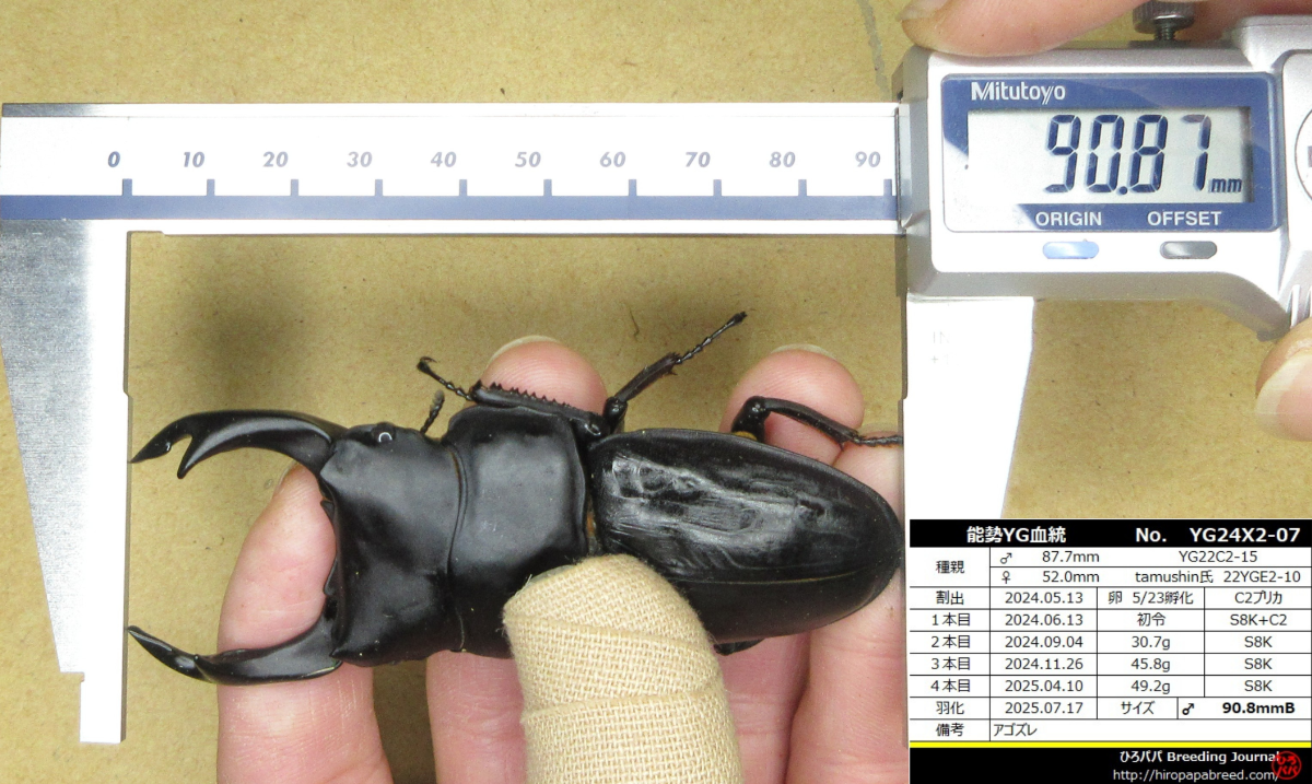 このラインはtamushinさんが作出された93.0mmという驚愕サイズの♂に我が家の♀を掛けてくださった最高のライン。