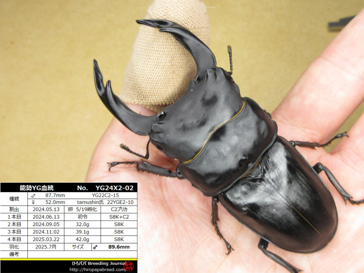 今季は決して納得のいくブリード管理とは言えませんでしたが、種親・幼虫を補強させて頂いたブリーダーさんの力もお借りし楽しむことができました。