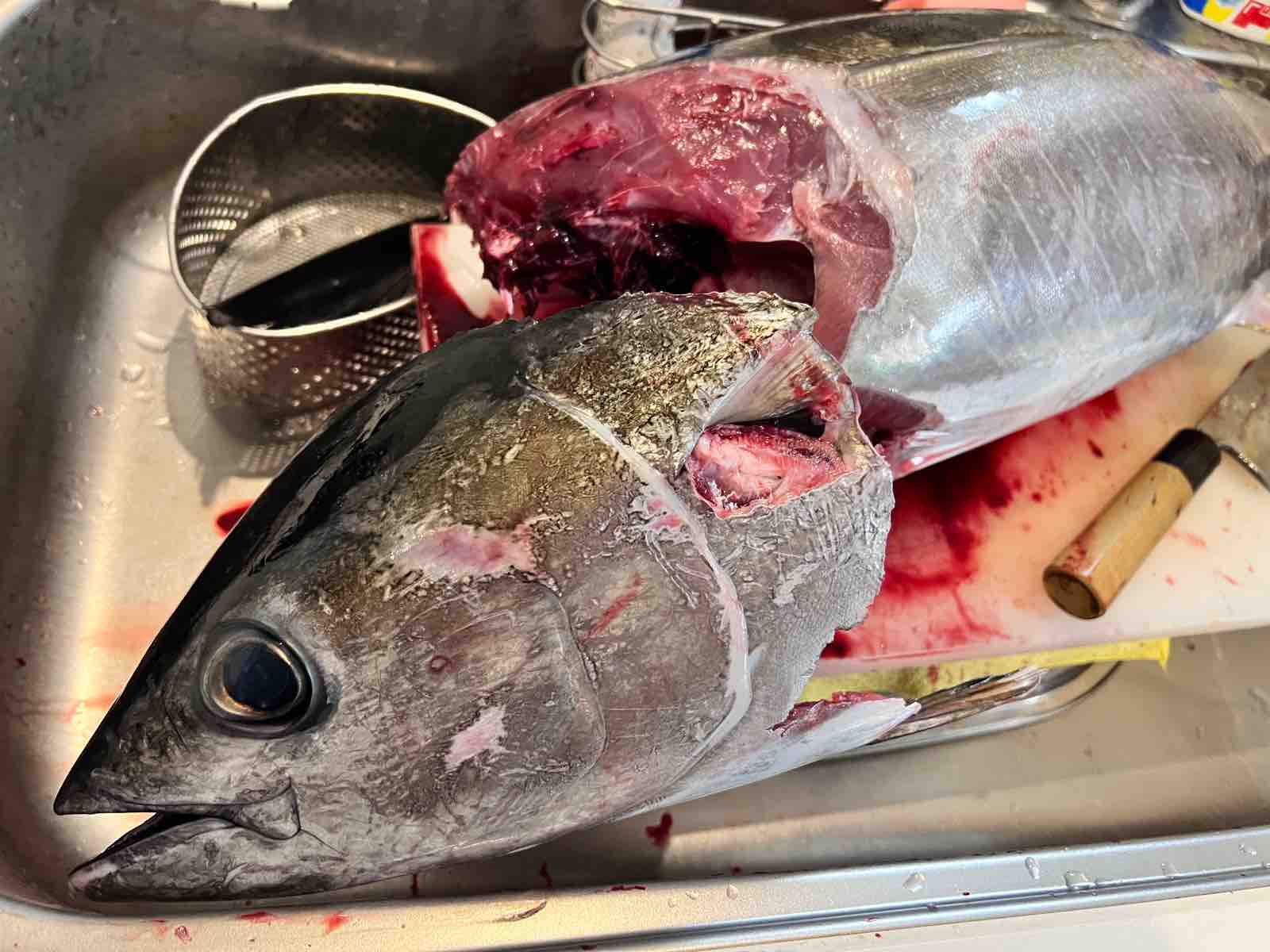 釣るワクワクよりも初めてマグロを捌いてみるというワクワクが上回ってます。