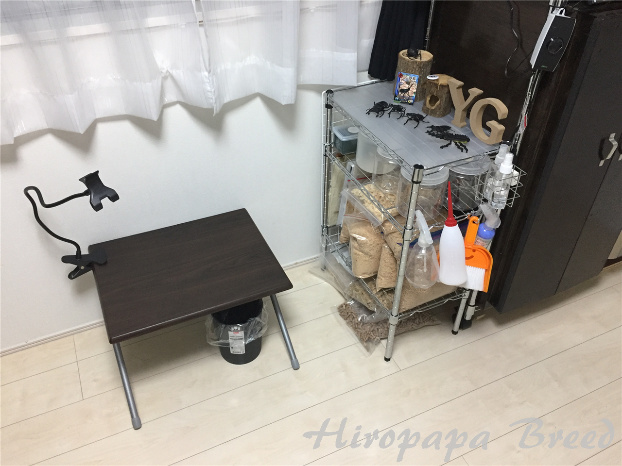 スペース的にはテーブルを畳めばほぼ変わっていませんので、相変わらずの押込み小規模飼育です。
